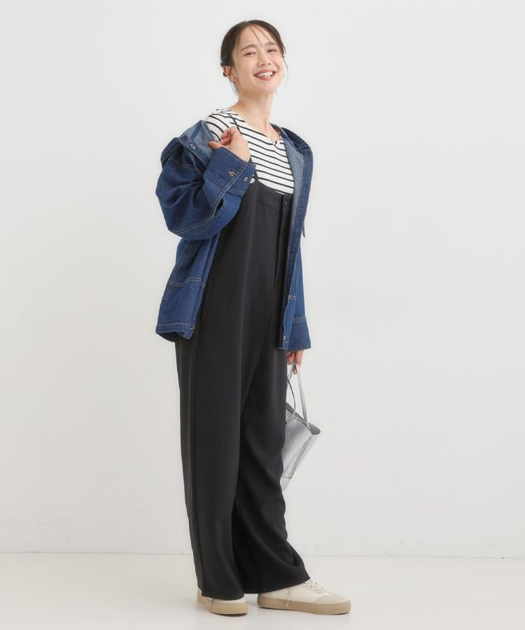 ボタンを閉め、トップス風にしてパンツを合わせた着こなしもお楽しみいただけます。