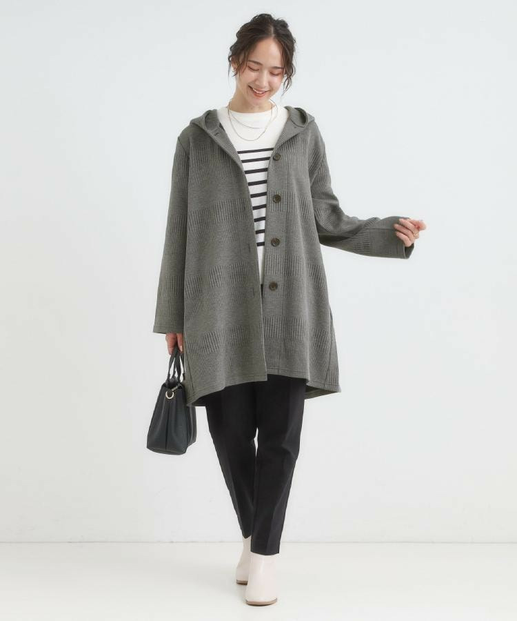 脚を真っ直ぐに見せてくれるシルエットで、体のラインを拾いにくく、すっきりとしたきれいなスティックパンツ。