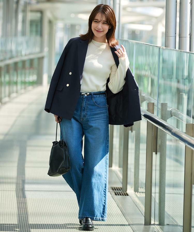 ローゲージのニットや裏起毛のスウェットなどを合わせた大人カジュアルスタイルはもちろん、