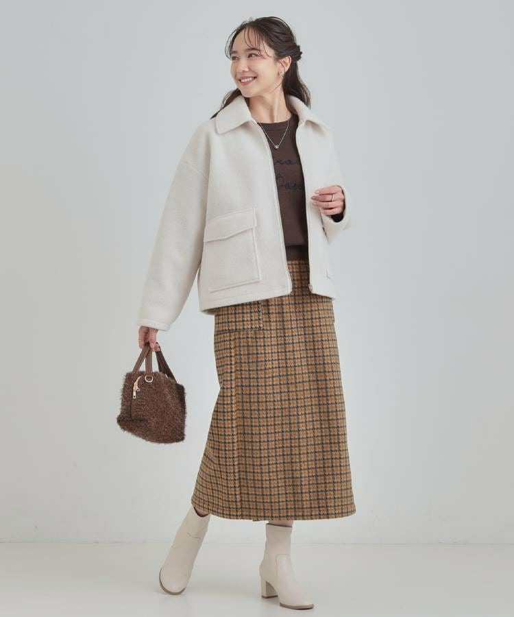 ナロースカートと合わせてIラインシルエットにまとめたスタイルがおすすめ。