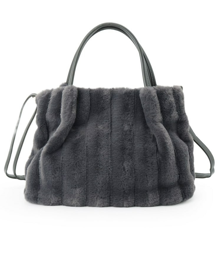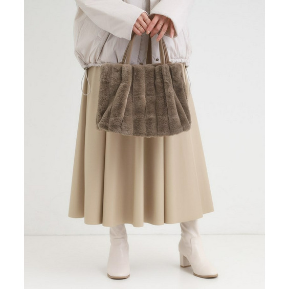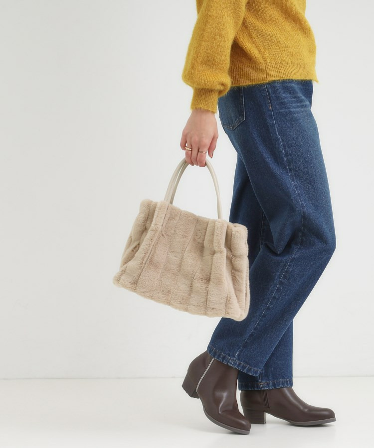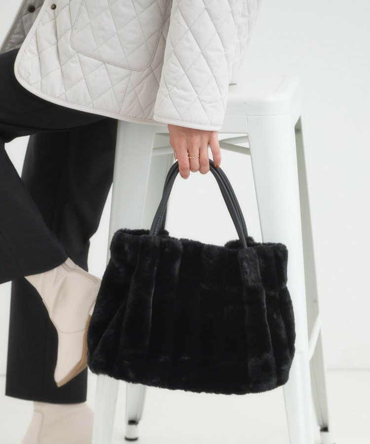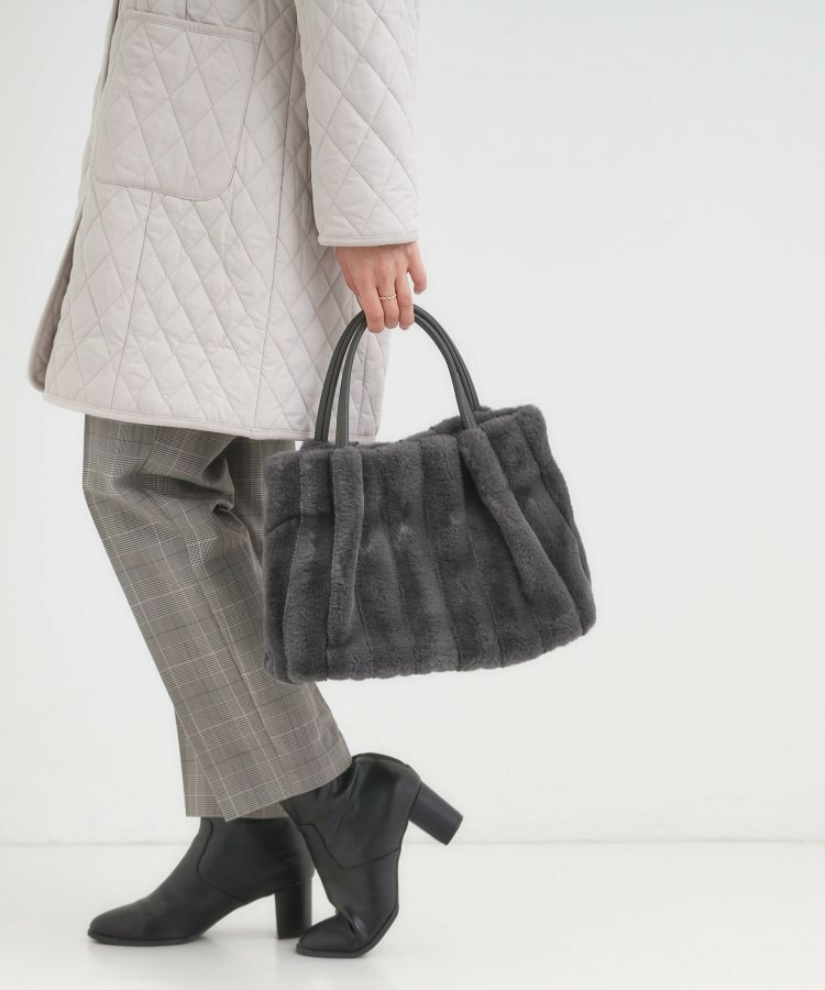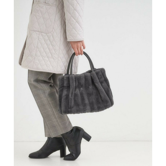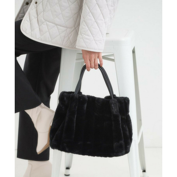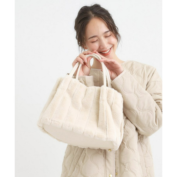 きれいめ見えするストライプのフェイクファーを使用したトートバッグです。