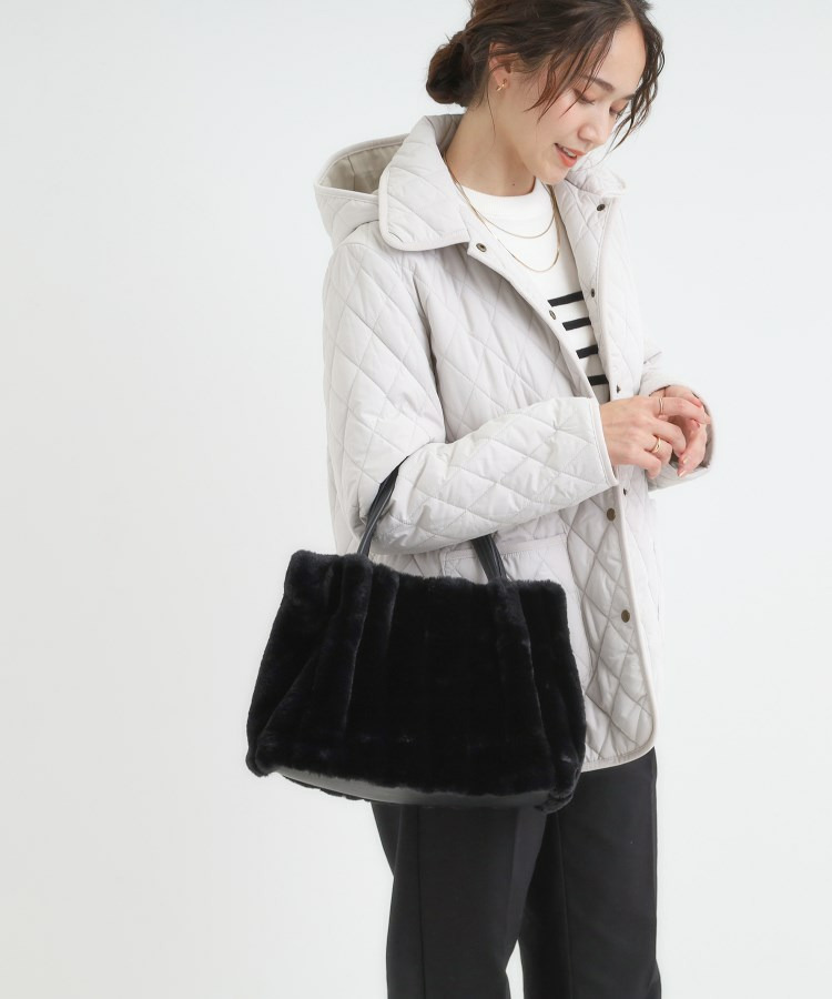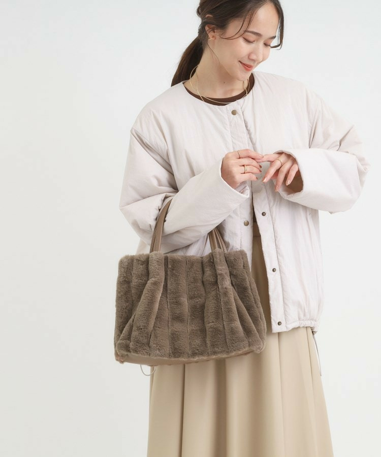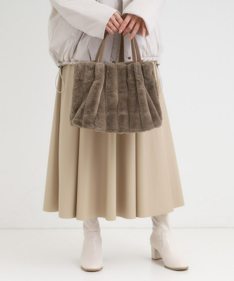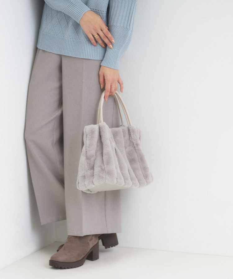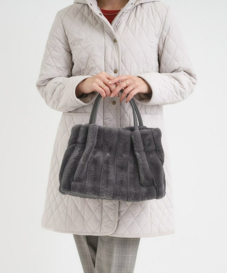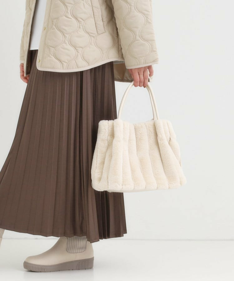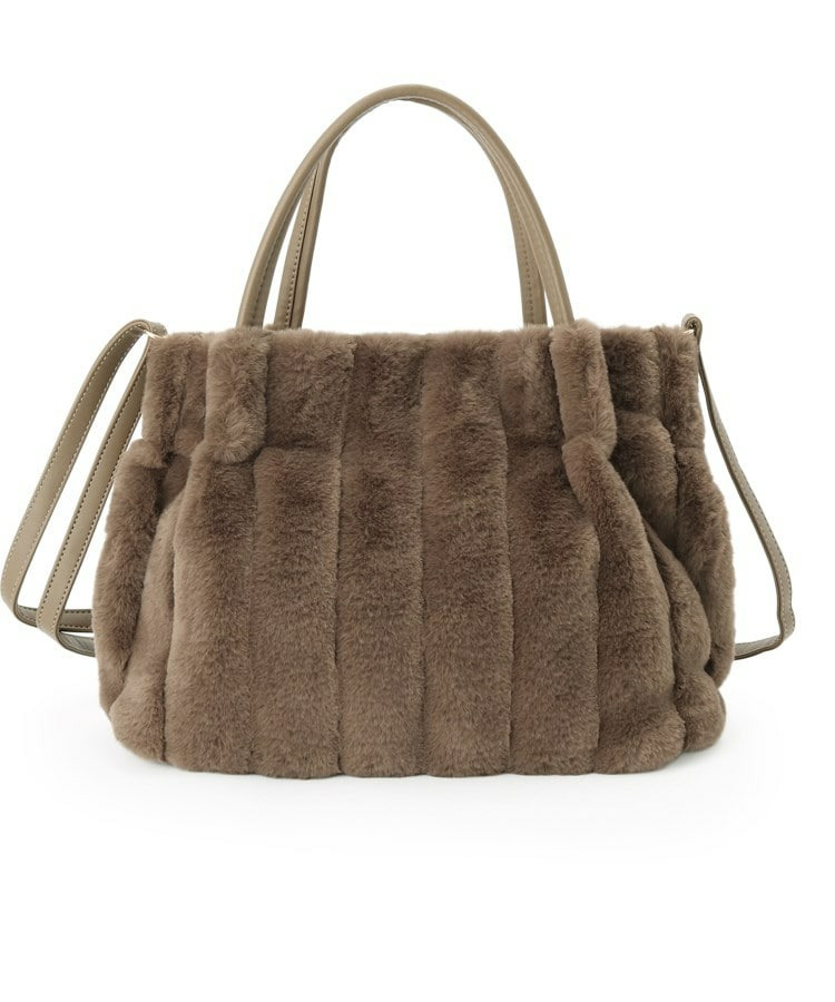 きれいめ見えするストライプのフェイクファーを使用したトートバッグです。