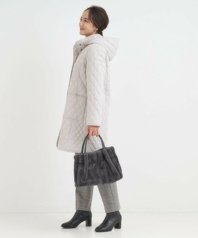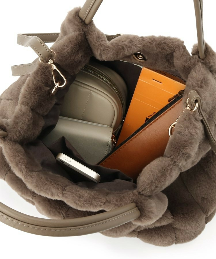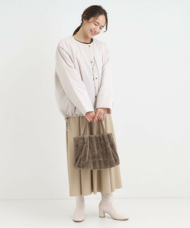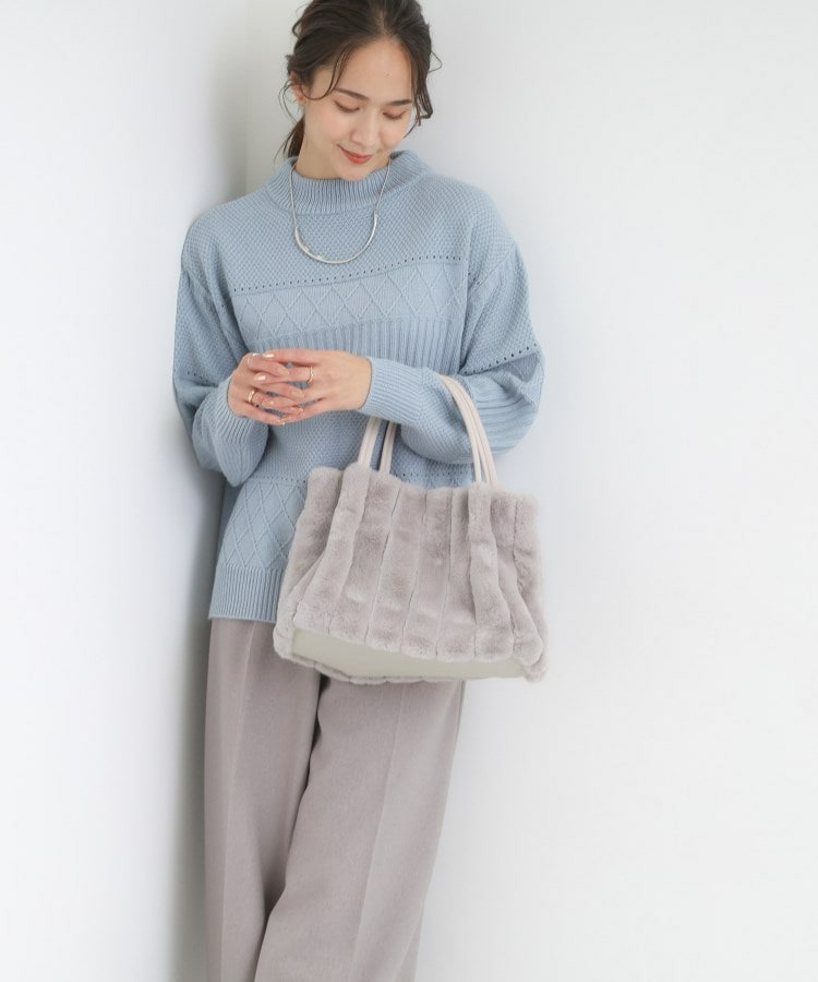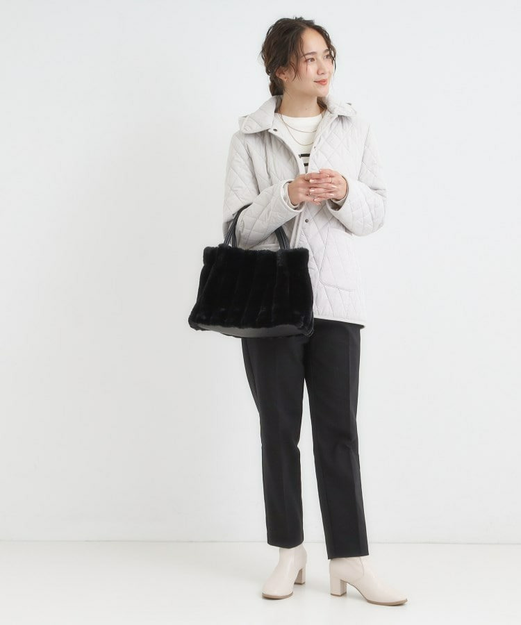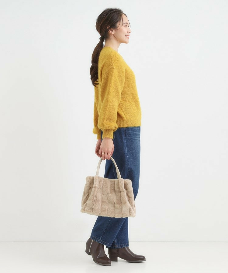 きれいめ見えするストライプのフェイクファーを使用したトートバッグです。