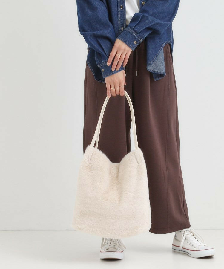 ふんわりとしたフェイクファーで秋冬感を演出するトートバッグです。