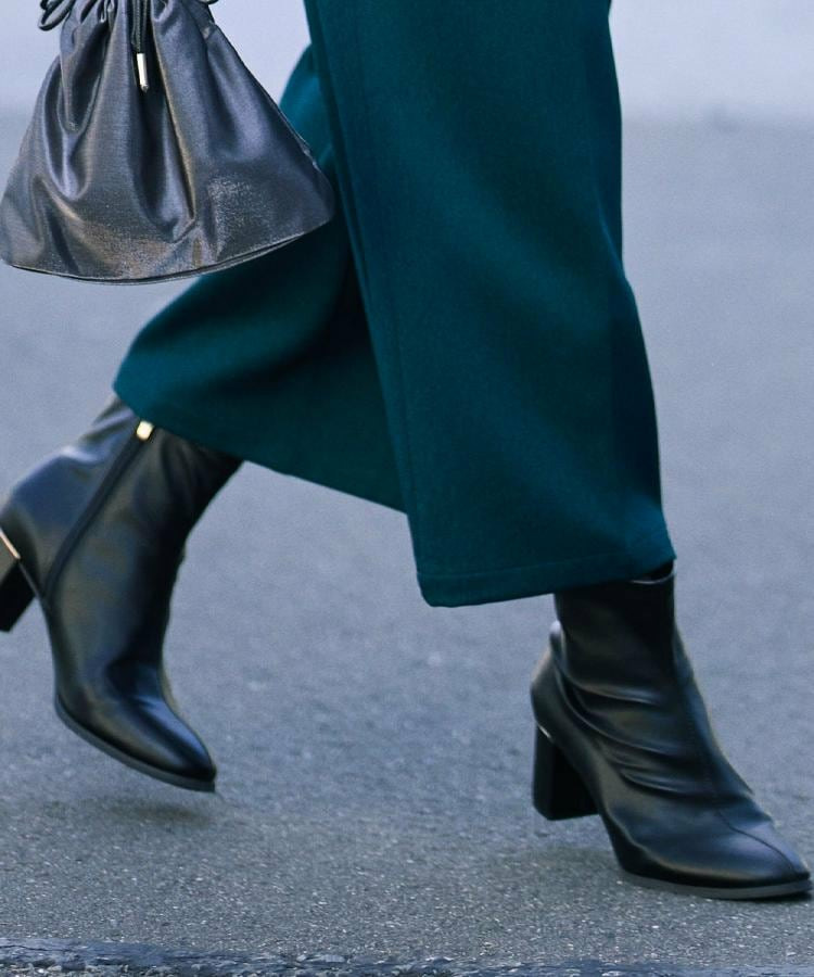 美脚効果のあるヒールは、安定感ある太目シルエット。