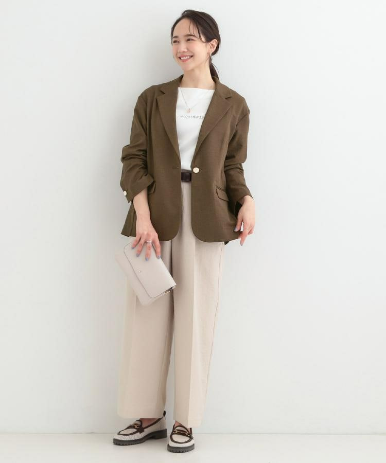 きれいめのスムース素材なので、通勤のオフィスカジュアルにも。