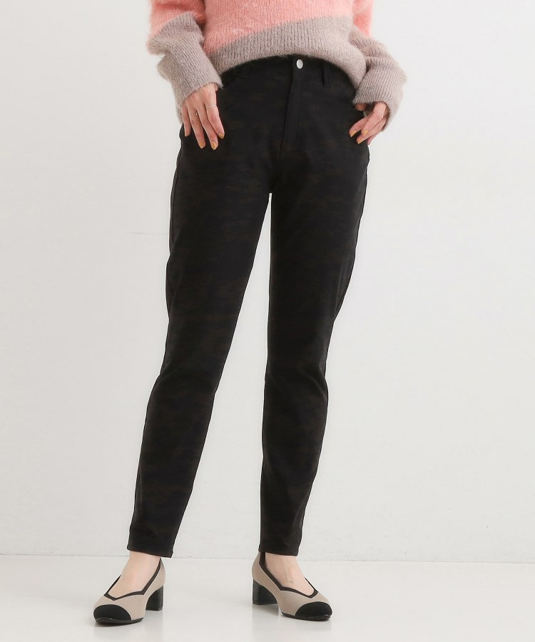 伸縮性に富んだ素材感のスキニーシルエットのパンツです。
