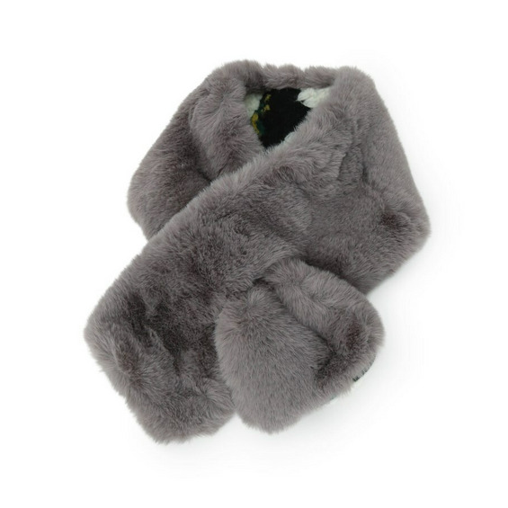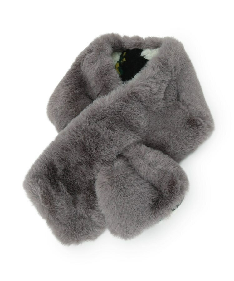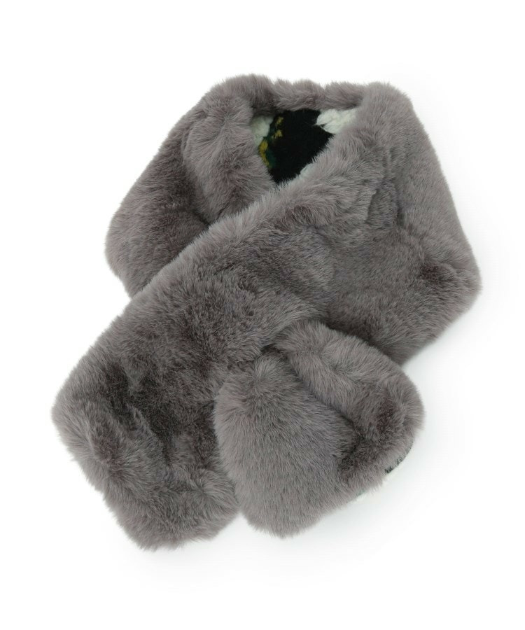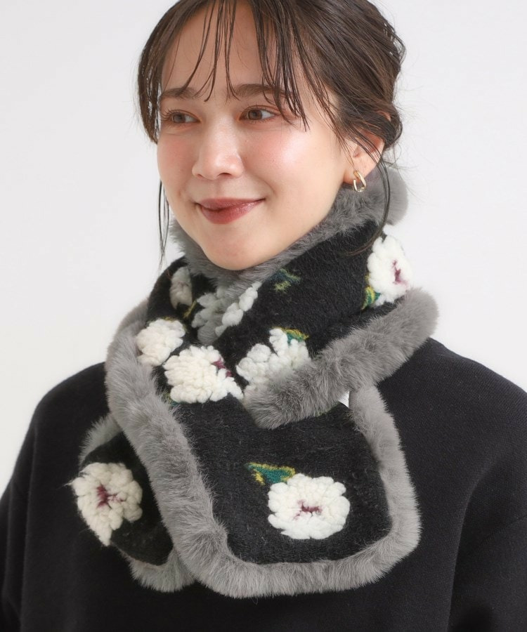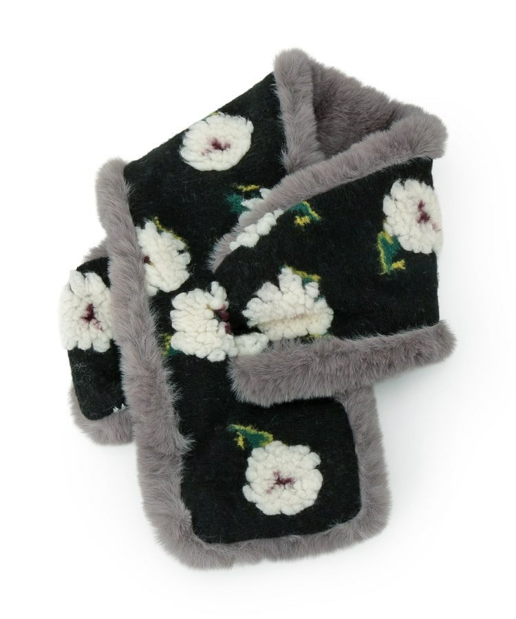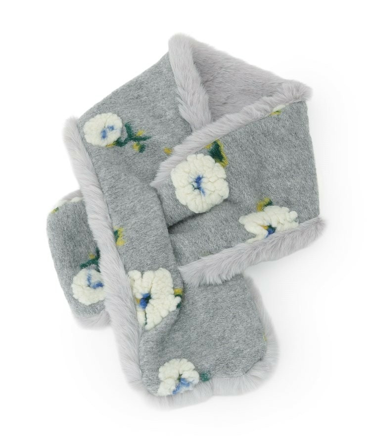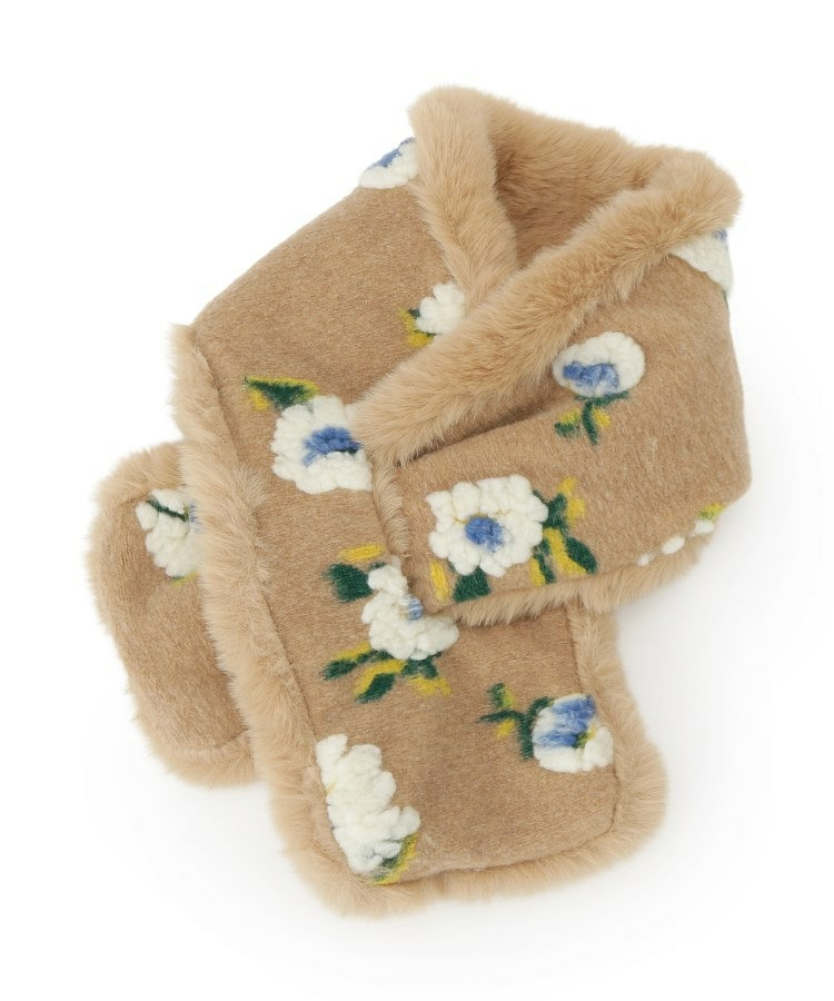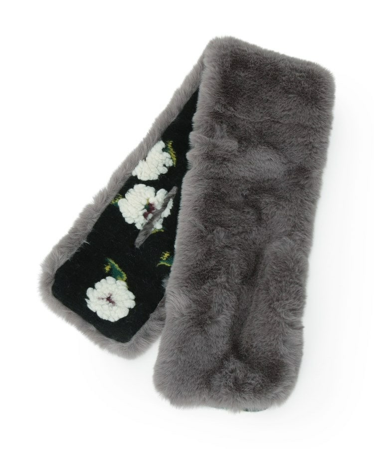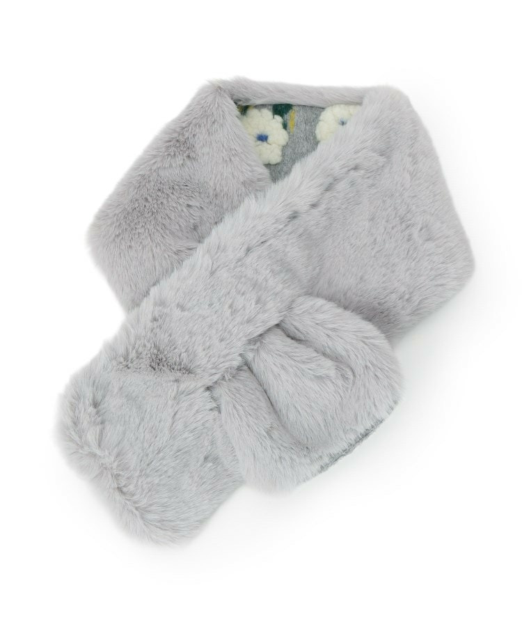 フラワー柄と無地のファーのリバーシブル使いができるファーティペットです。
