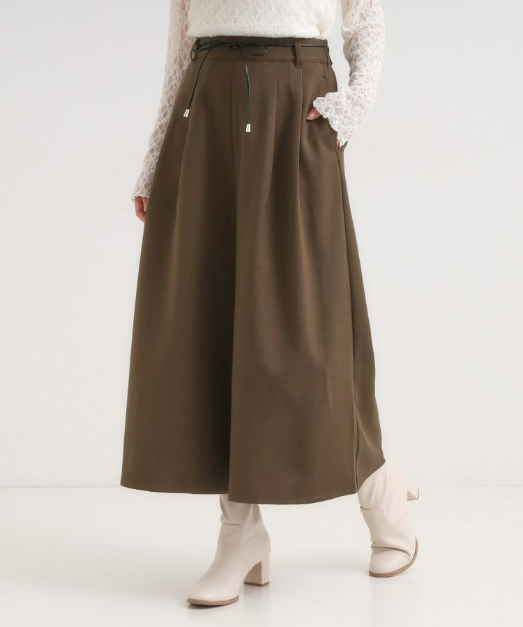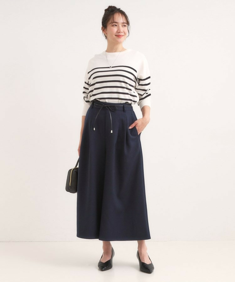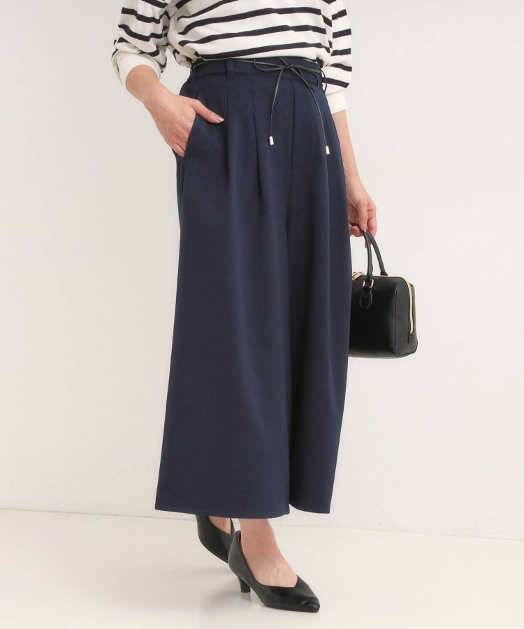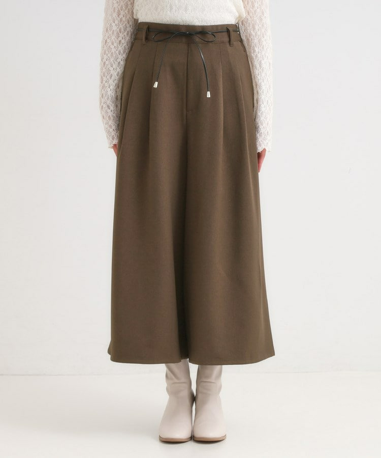 フロントにタックを入れることで、程よく立体感を出したスカーチョパンツ。