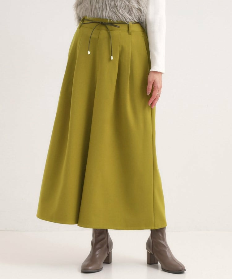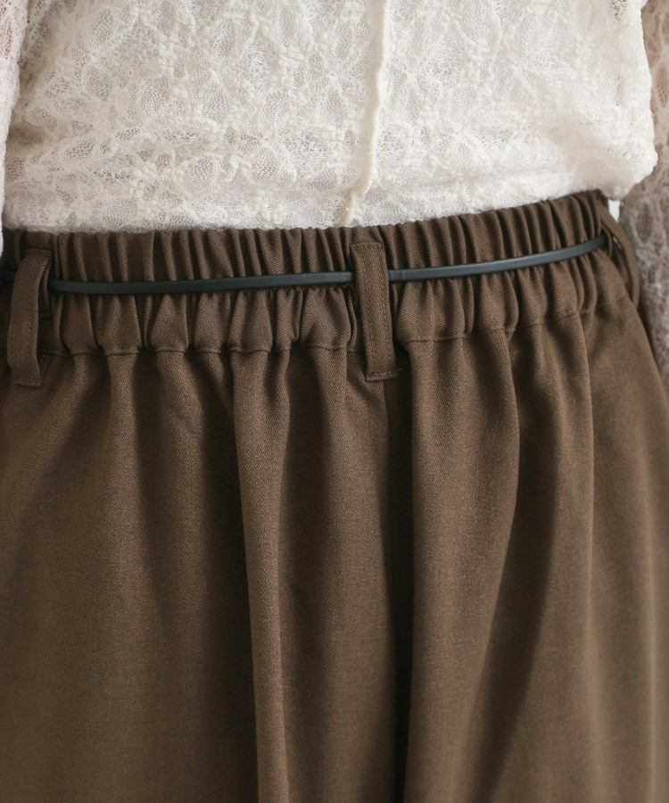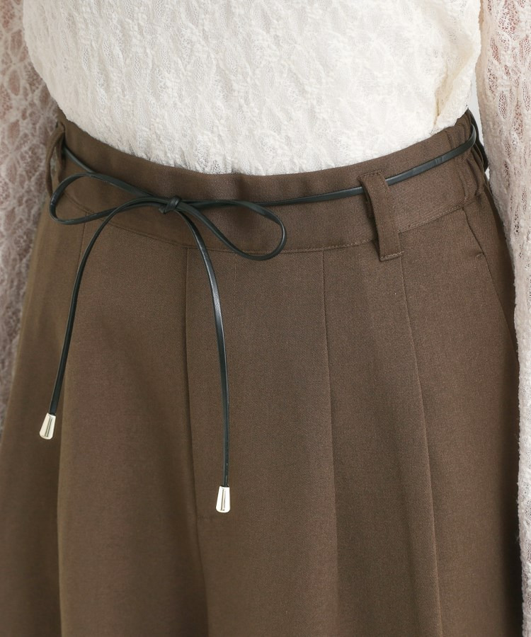 ウエストには華奢なリボンベルトをセットにし、女性らしさをプラス。