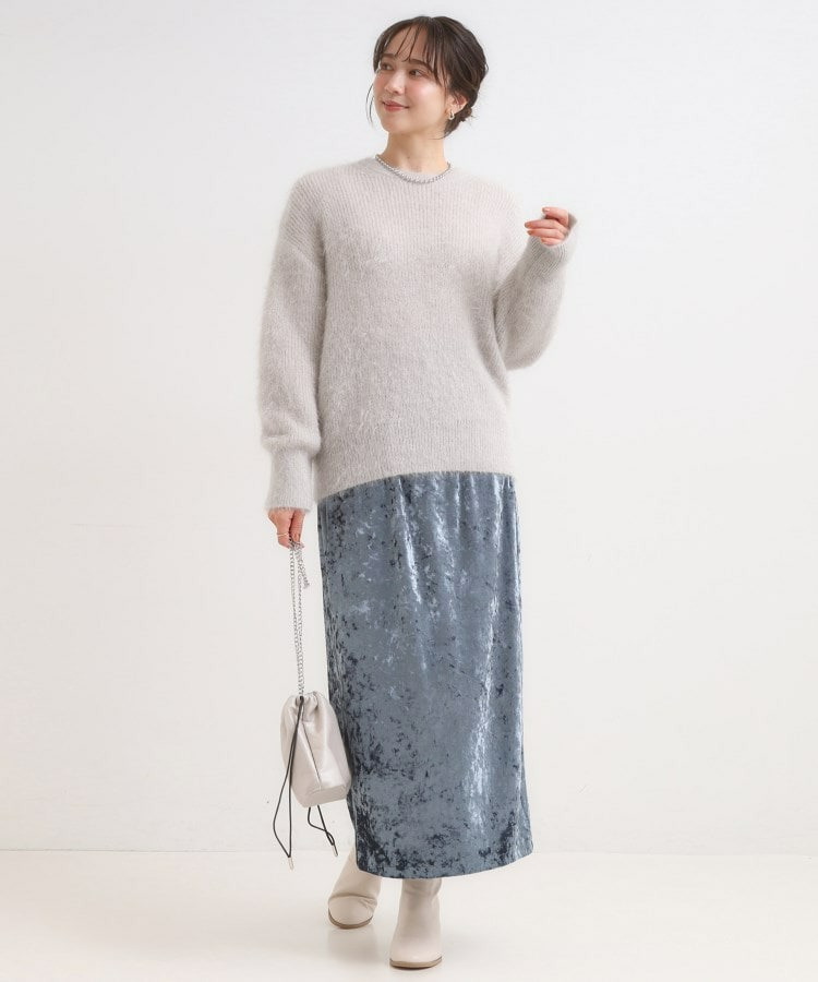 ふわふわとしたフェザーの良さを活かした、シンプルで合わせやすいスタイルになっています。