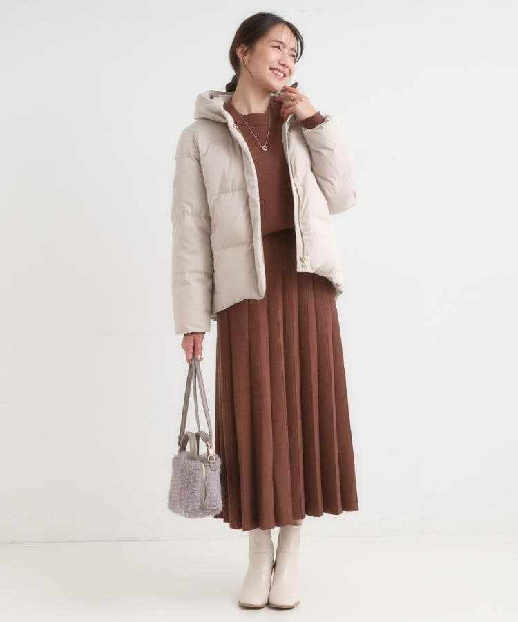程よくボリューム感のある襟周りで、上品な見え感のダウンジャケット。