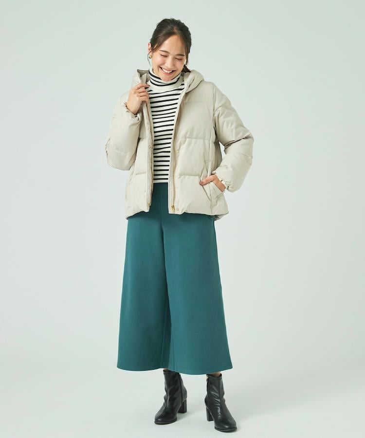 タートルニットやハイネックニットを合わせるとマフラーいらずな着こなしになりおすすめです。