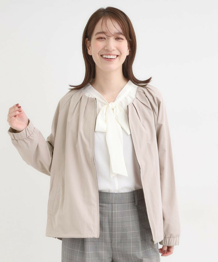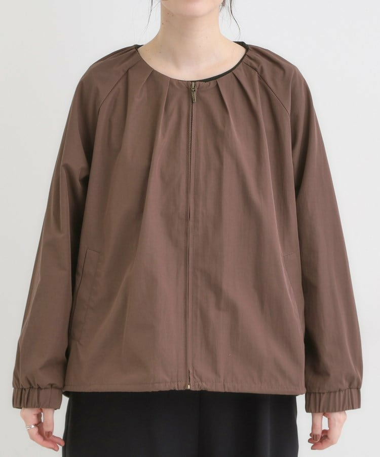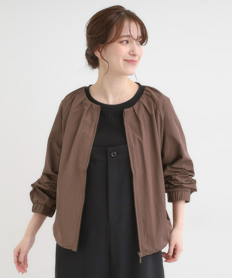衿のタックづかいがポイントの軽量ライトブルゾン。