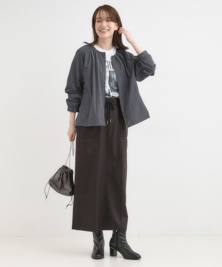 ノーカラーデザインで、顔周りをすっきりと見せつつ、全体的に丸みのあるフォルムがこなれた印象になりおすすめです。