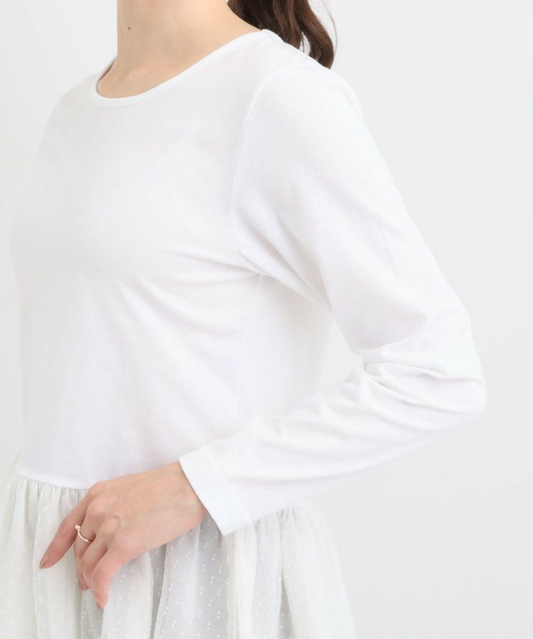 素材 | オフホワイト(003) ジャージ部分:ポリエステル65% コットン35% シフォン部分:ナイロン55% ポリエステル45% その他:ポリエステル100% オフホワイト(403) ジャージ部分:ポリエステル65% コットン35% レース部分:ナイロン90% ポリウレタン10% オフホワイト(603) ジャージ部分:ポリエステル65% コットン35% チュール部分:ポリエステル100% その他:ポリエステル100% |