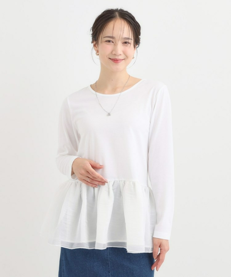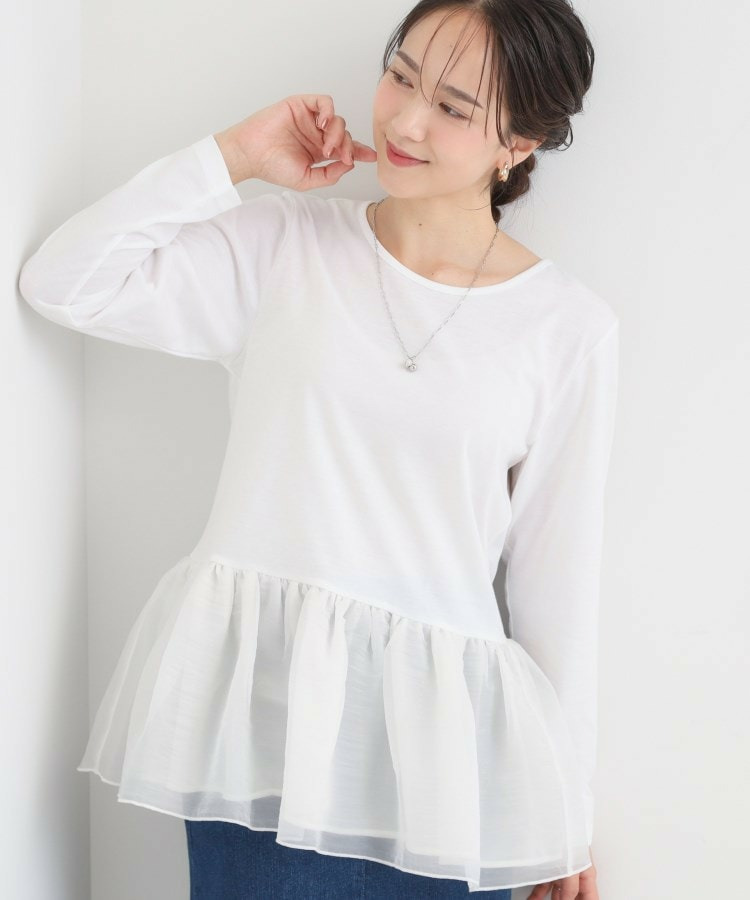ナロースカートに合わせれば、裾のふんわり感が引き立つフェミニコーデが楽しめます。