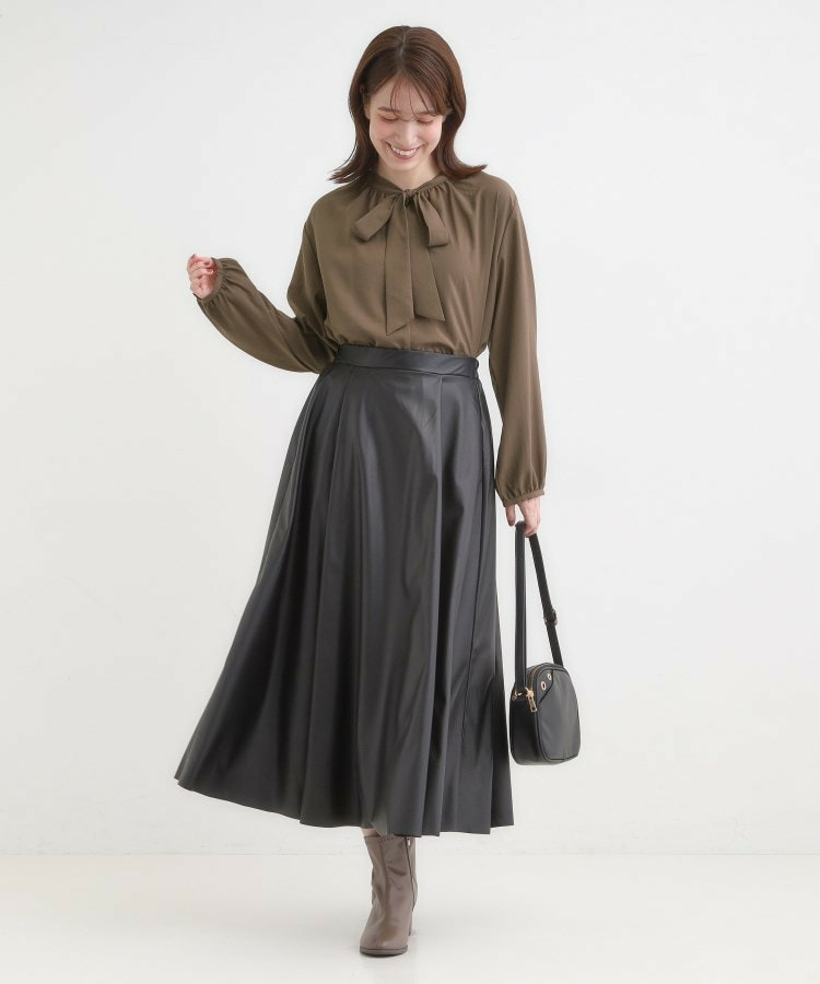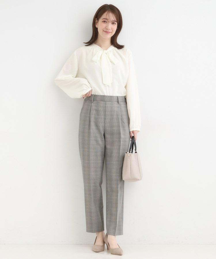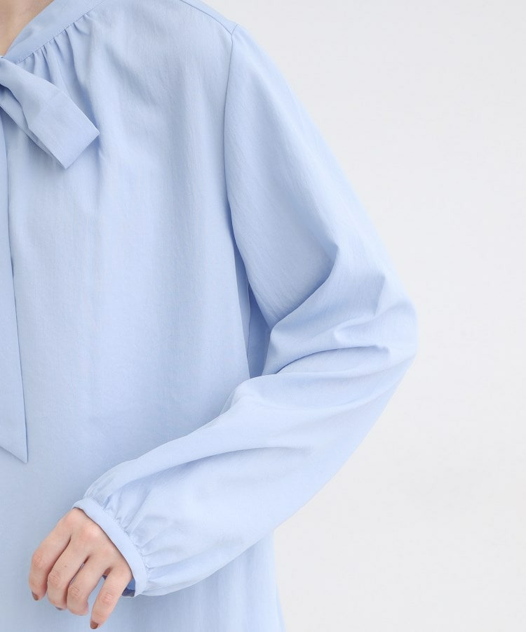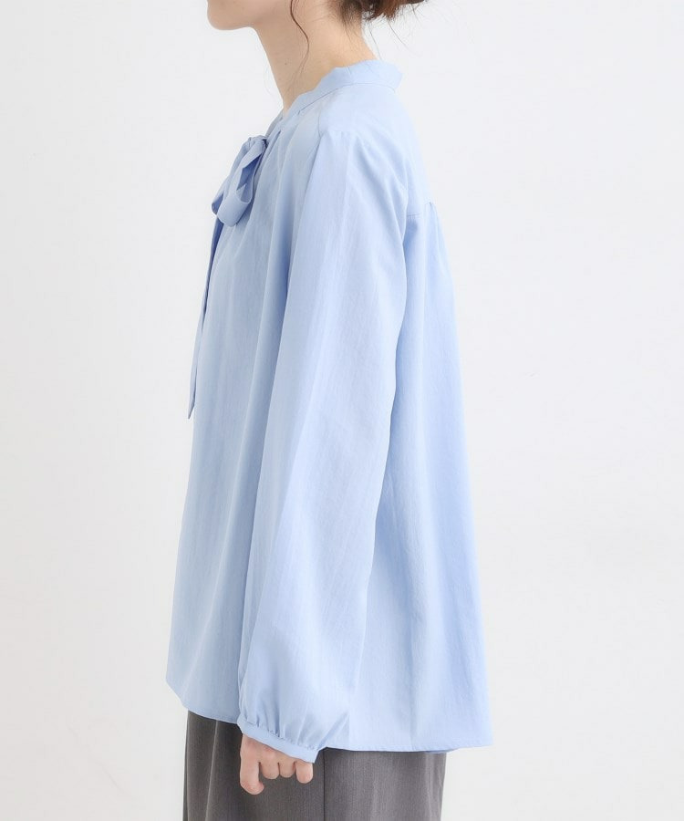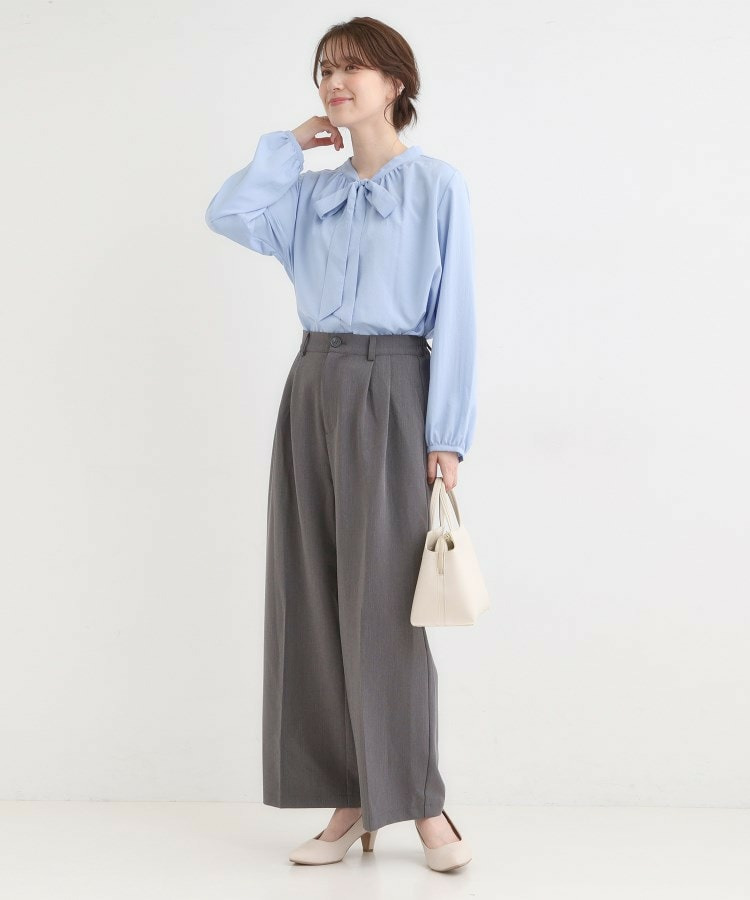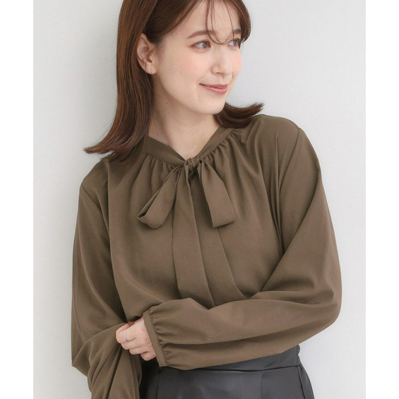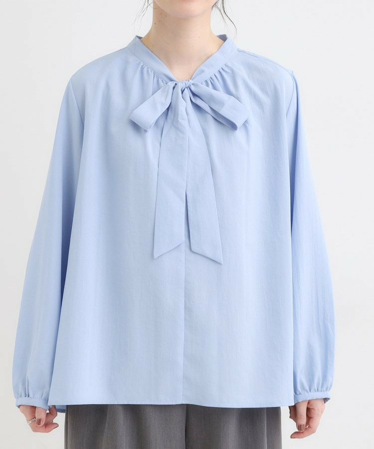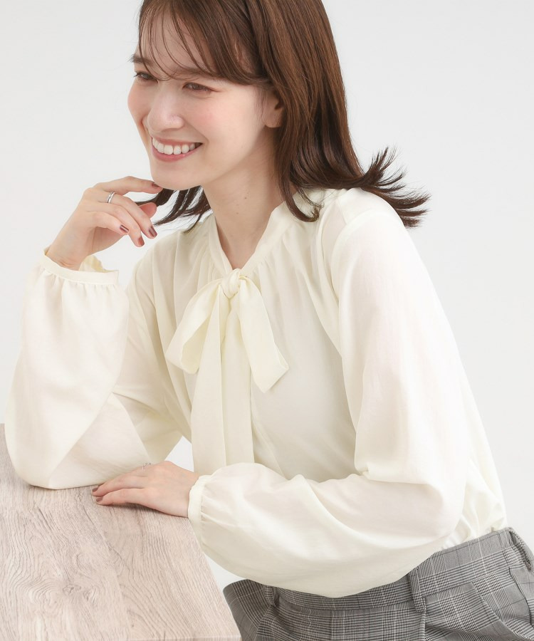 フロントにあしらったボウタイが目を引くデザインブラウス。