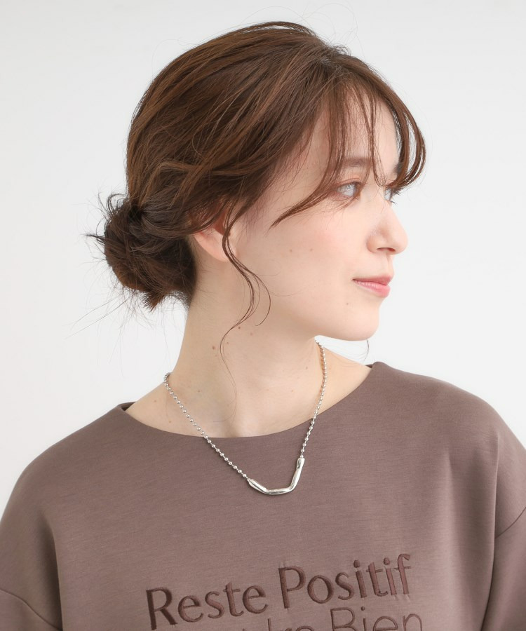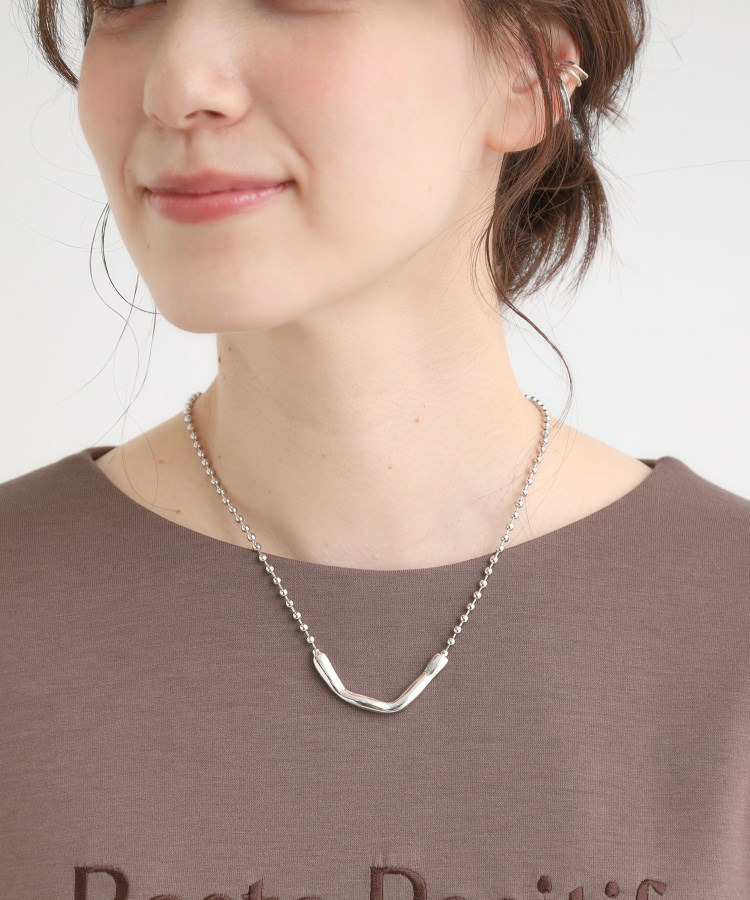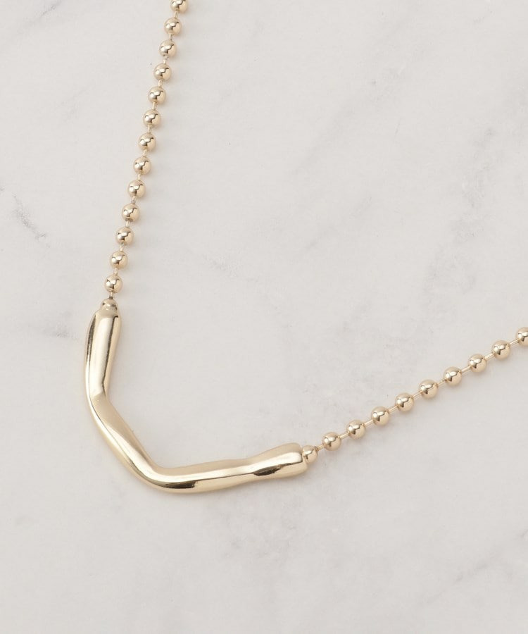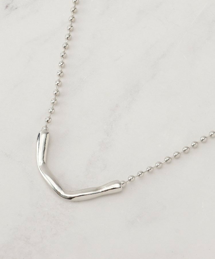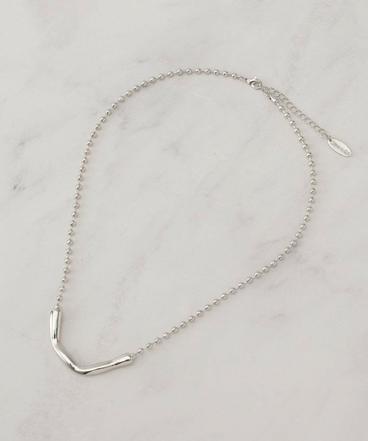 表面感あるメタルパーツとボールチェーンの組み合わせがシンプルで合わせやすいネックレス