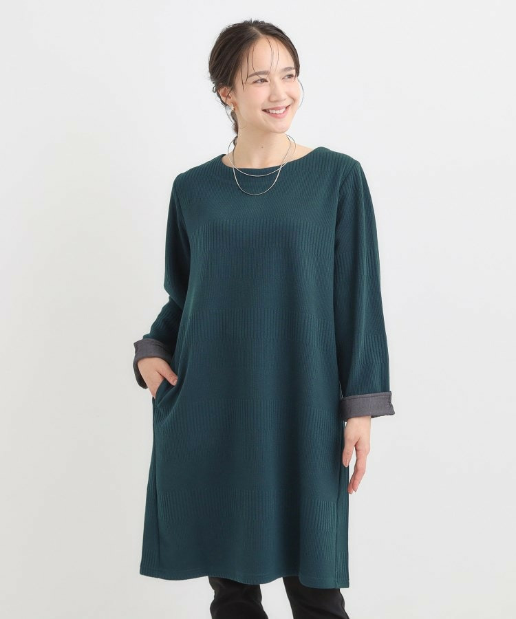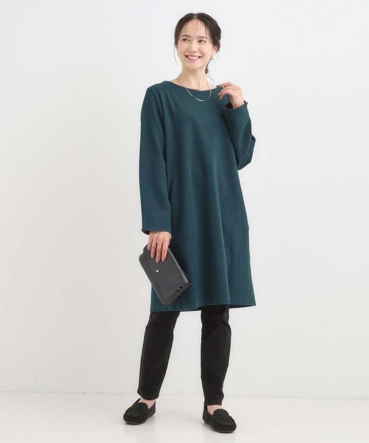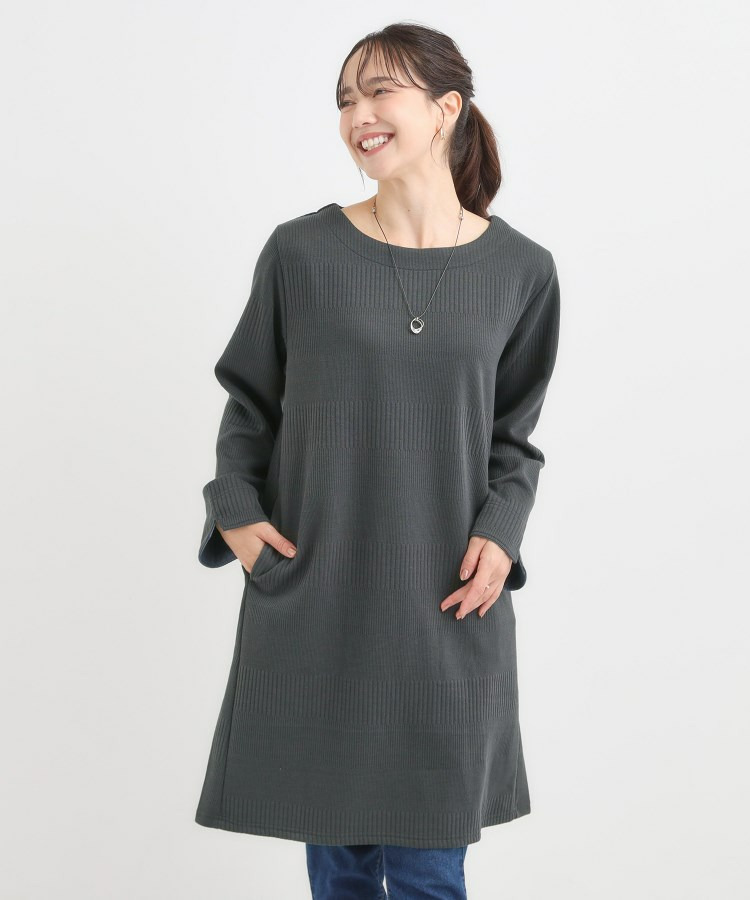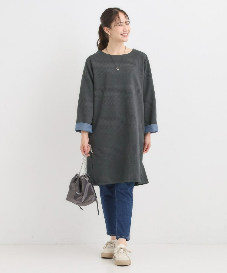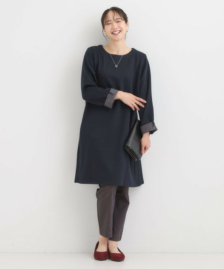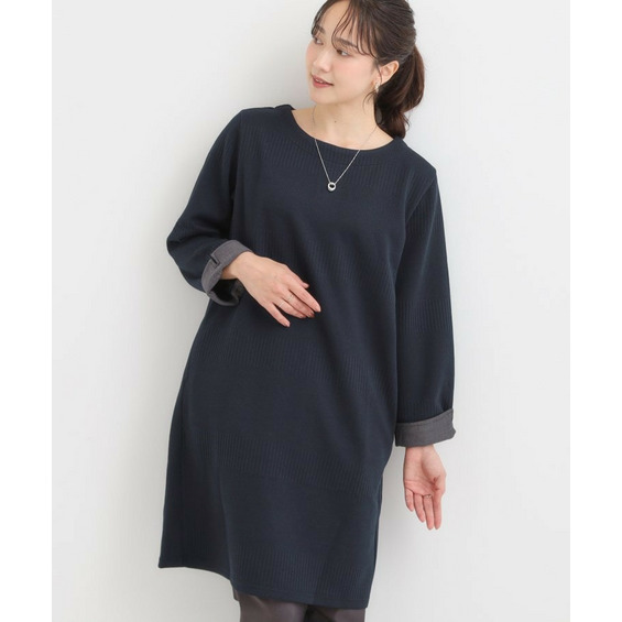 Aラインシルエットで身体のラインをきれいにカバーするチュニックワンピース。