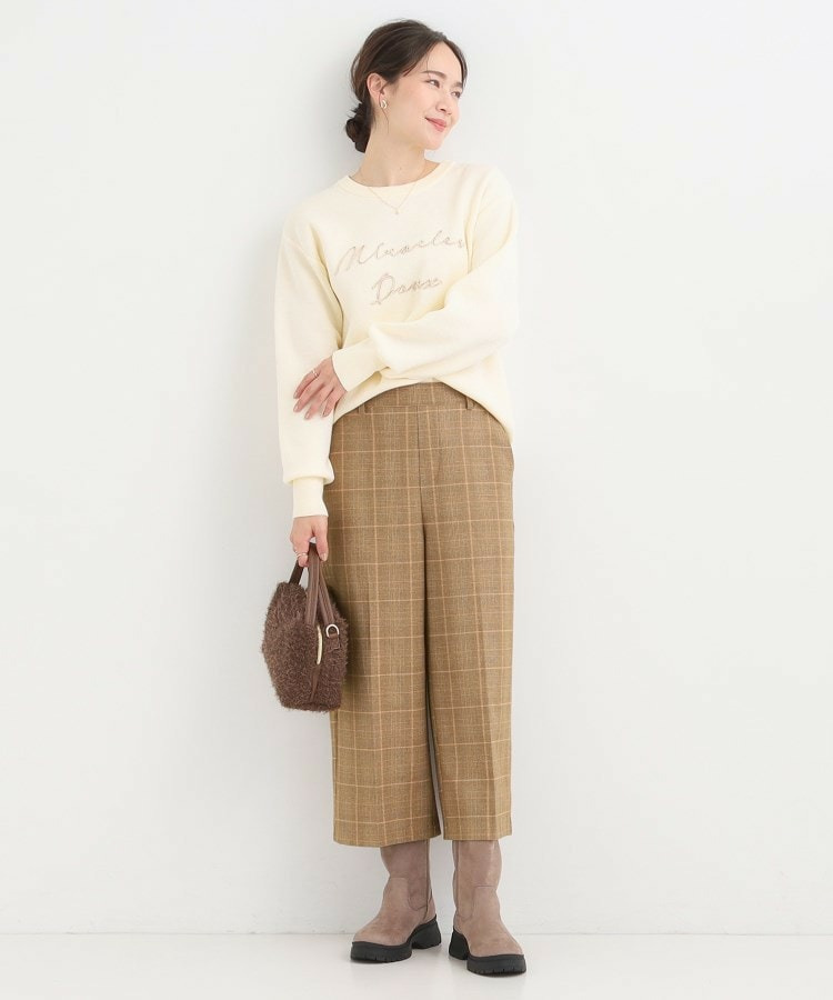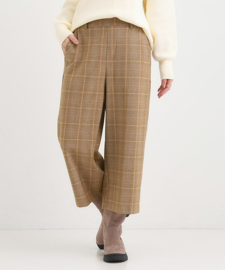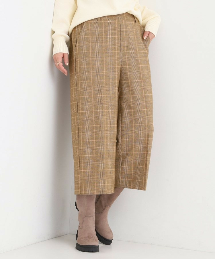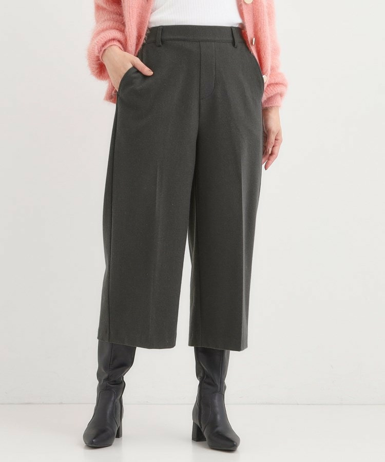 ウエストゴムでサッと穿ける、起毛素材のカジュアルなガウチョパンツ。