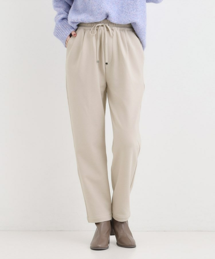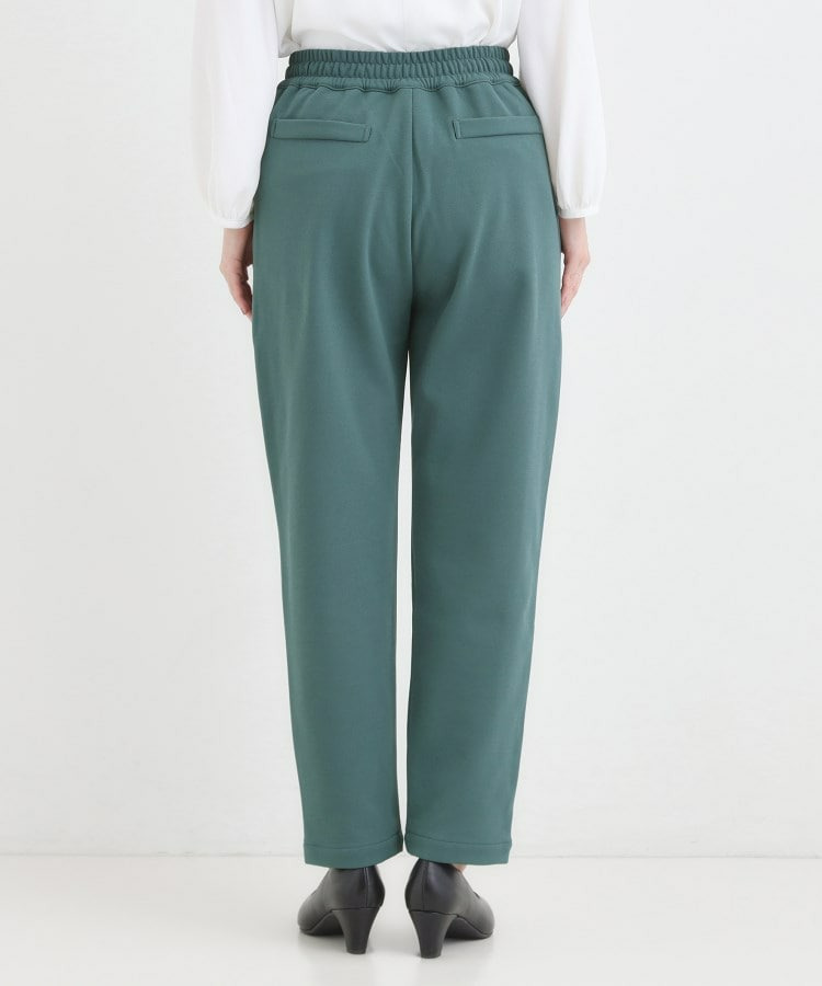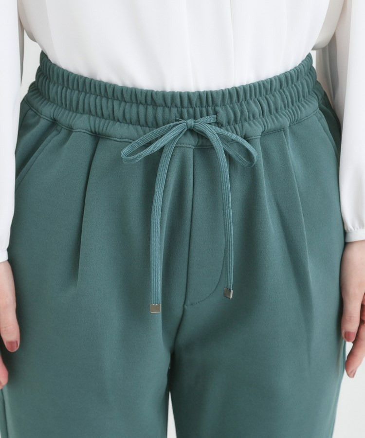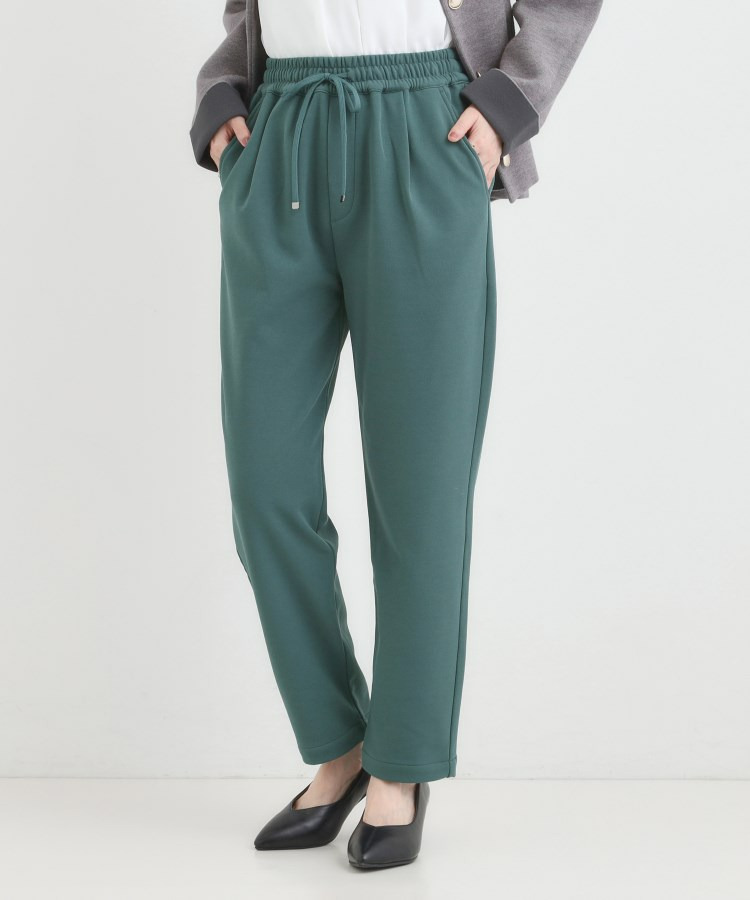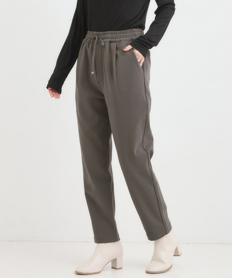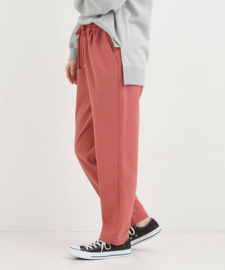 腰回りはゆったりとしていて脚のラインを拾いにくく、裾に向かって細くなるテーパードシルエットで、脚全体をすっきりと見せてくれます。