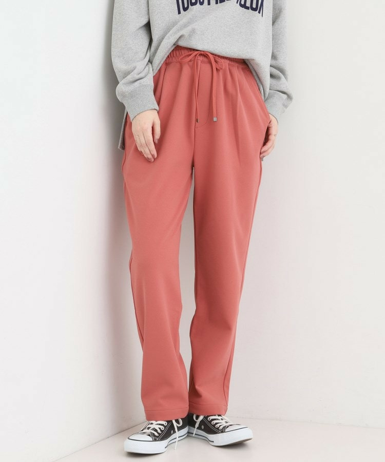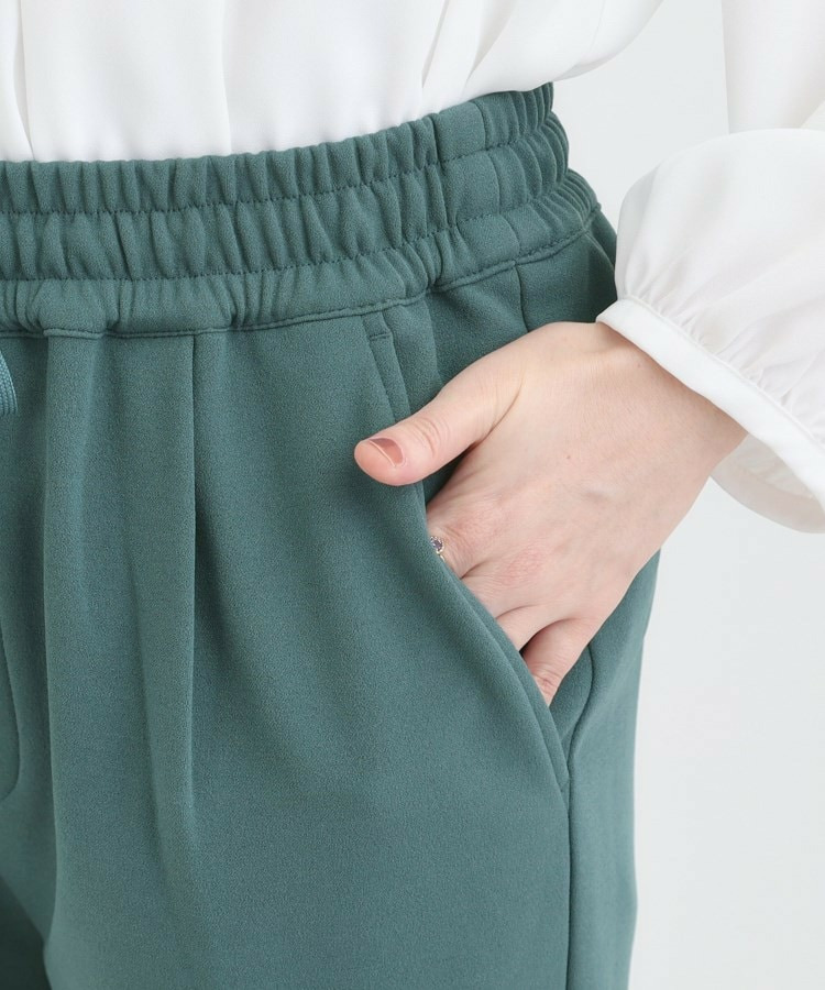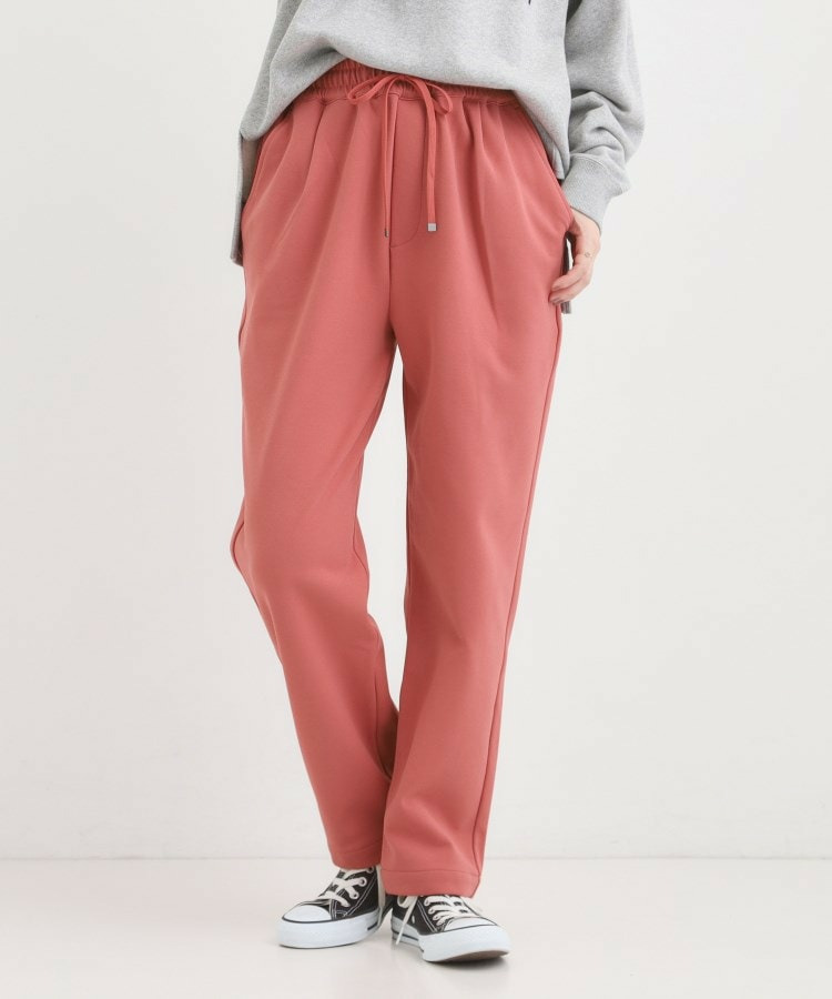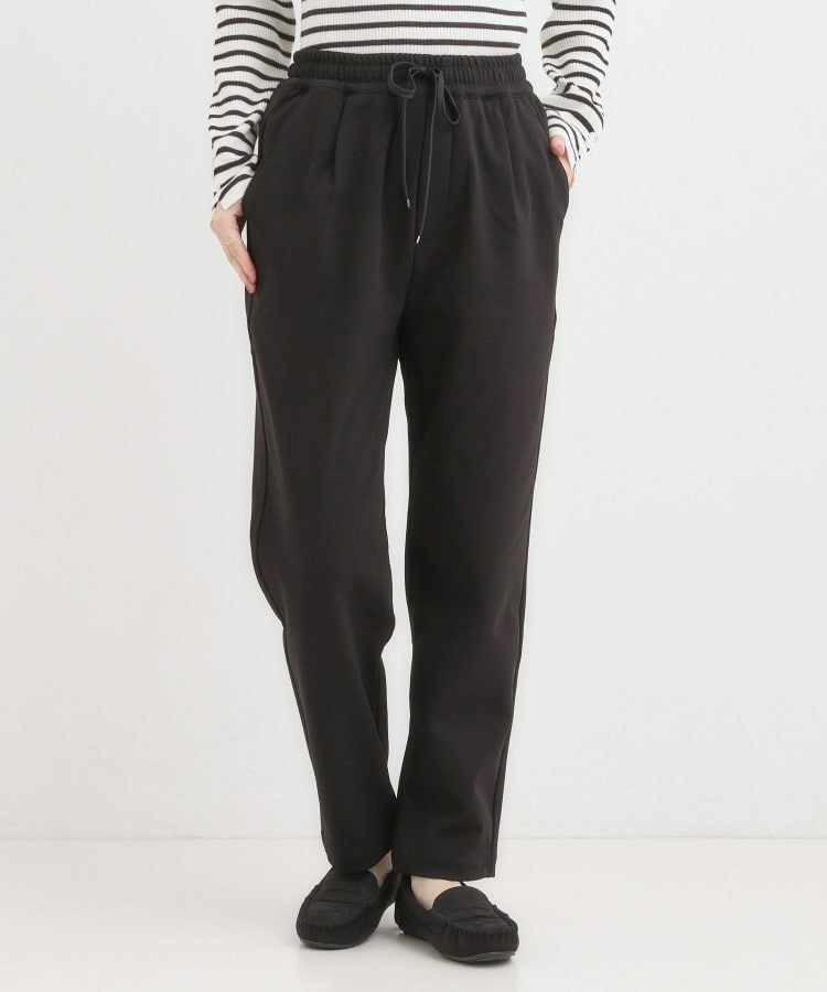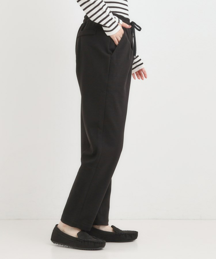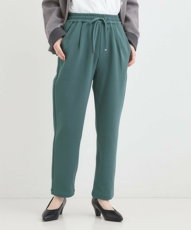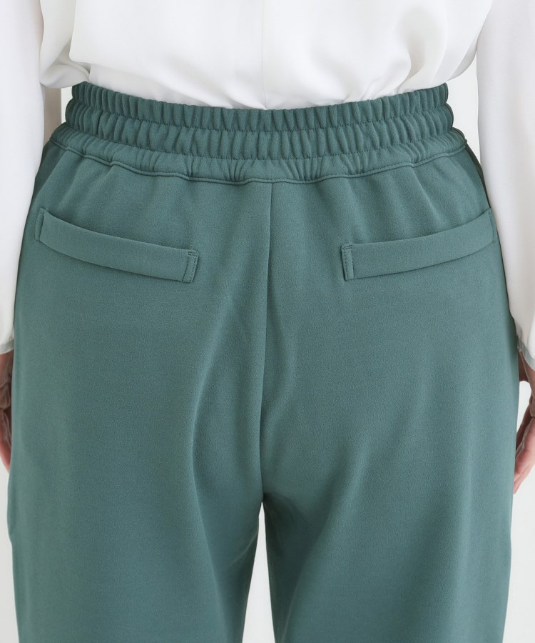 腰回りはゆったりとしていて脚のラインを拾いにくく、裾に向かって細くなるテーパードシルエットで、脚全体をすっきりと見せてくれます。