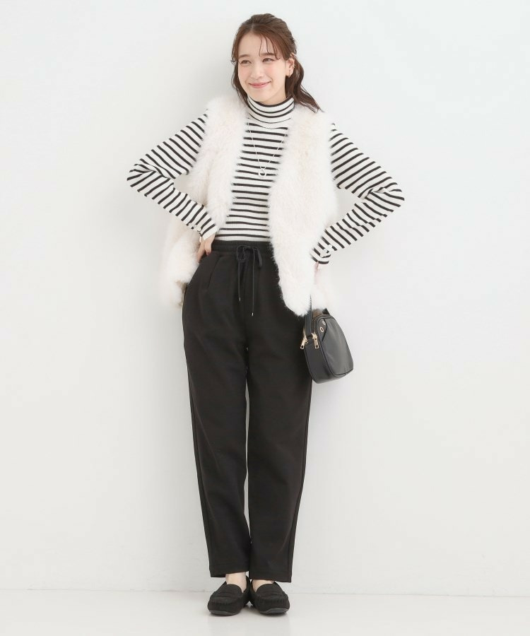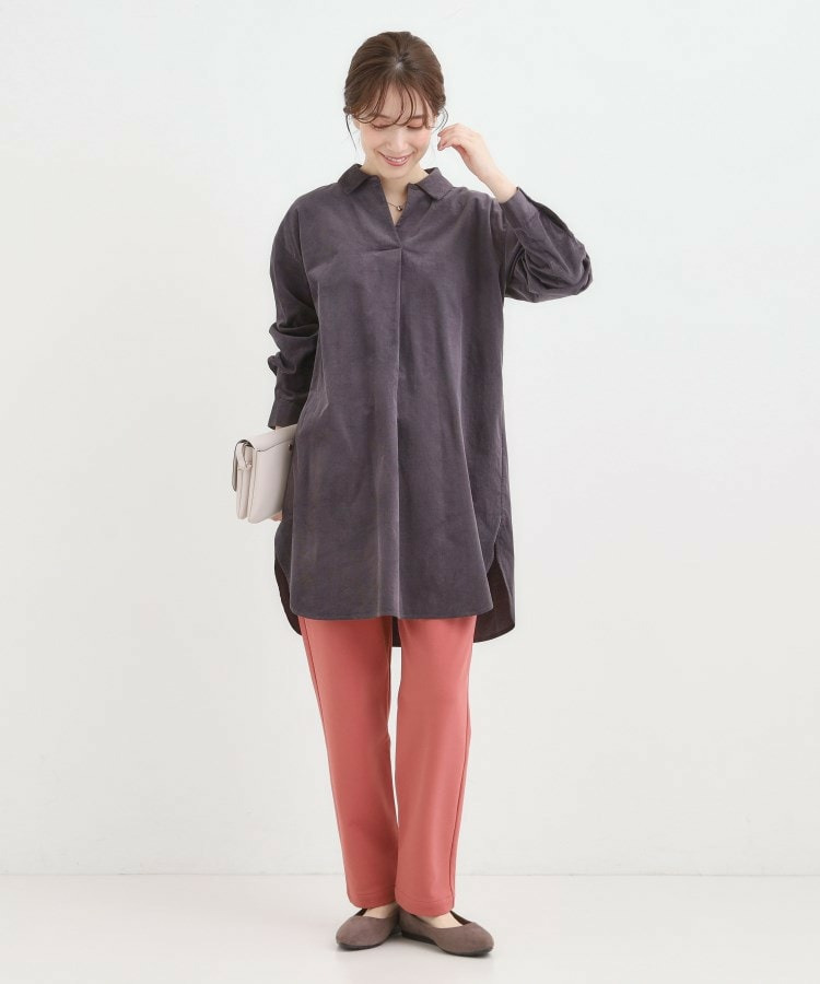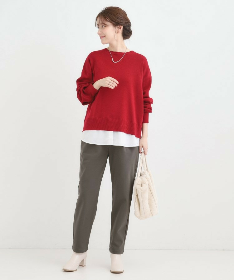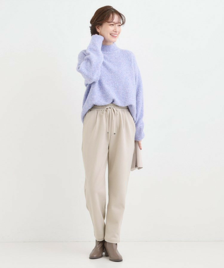 肌触りが優しく、伸縮性のある素材で裏起毛素材で暖かく、カジュアルでもキレイめにも合わせやすくて、日常からお仕事着まで幅広いシーンに対応できるアイテムです。
