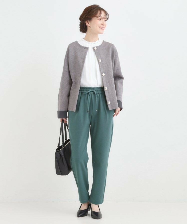 ブラウスをインしてカーディガンやジャケットを羽織り、足元にパンプス、ローファーを履いていただくと、大人のきれいめな着こなしにもなりおすすめです。