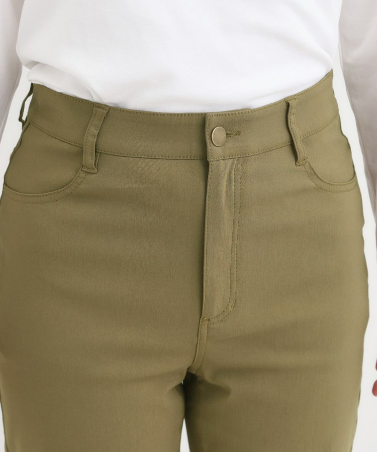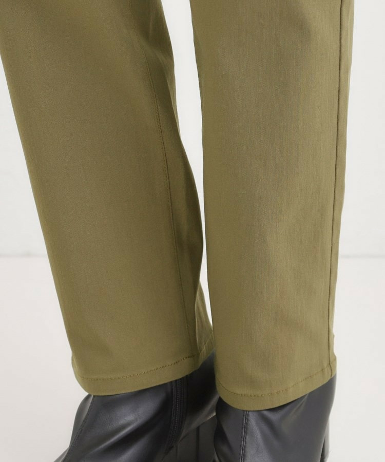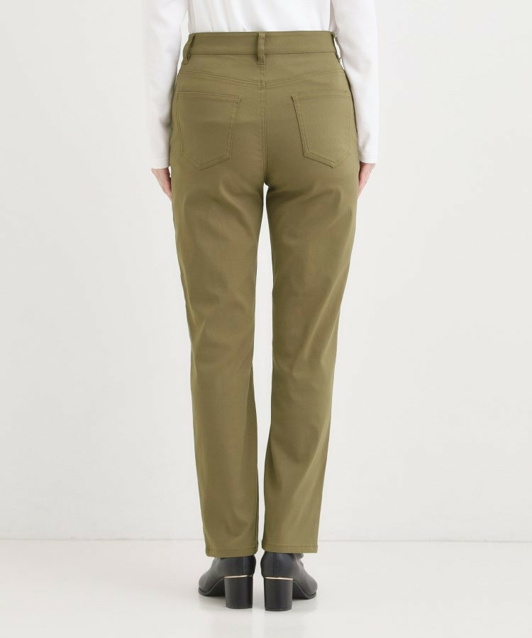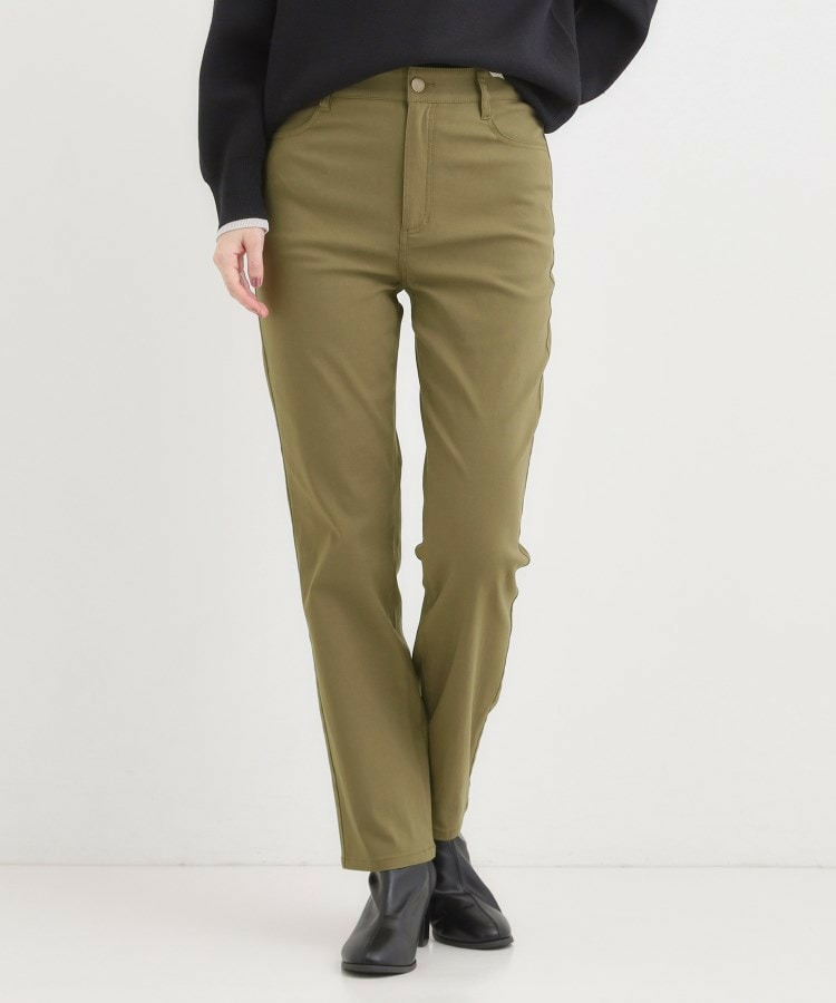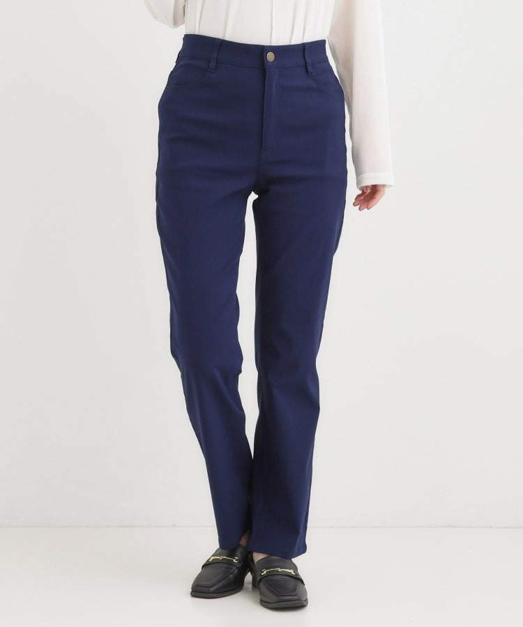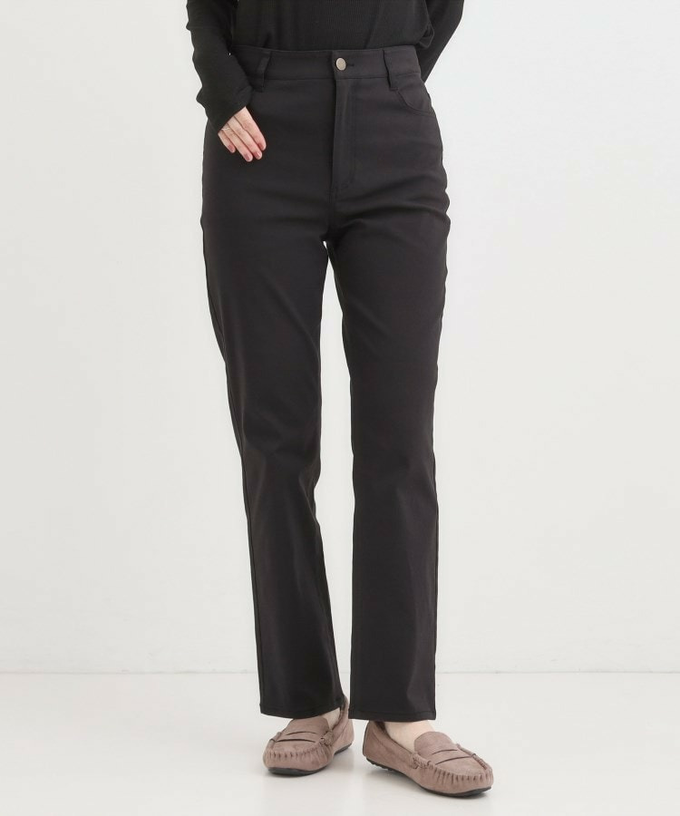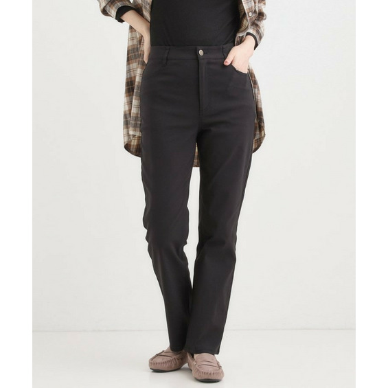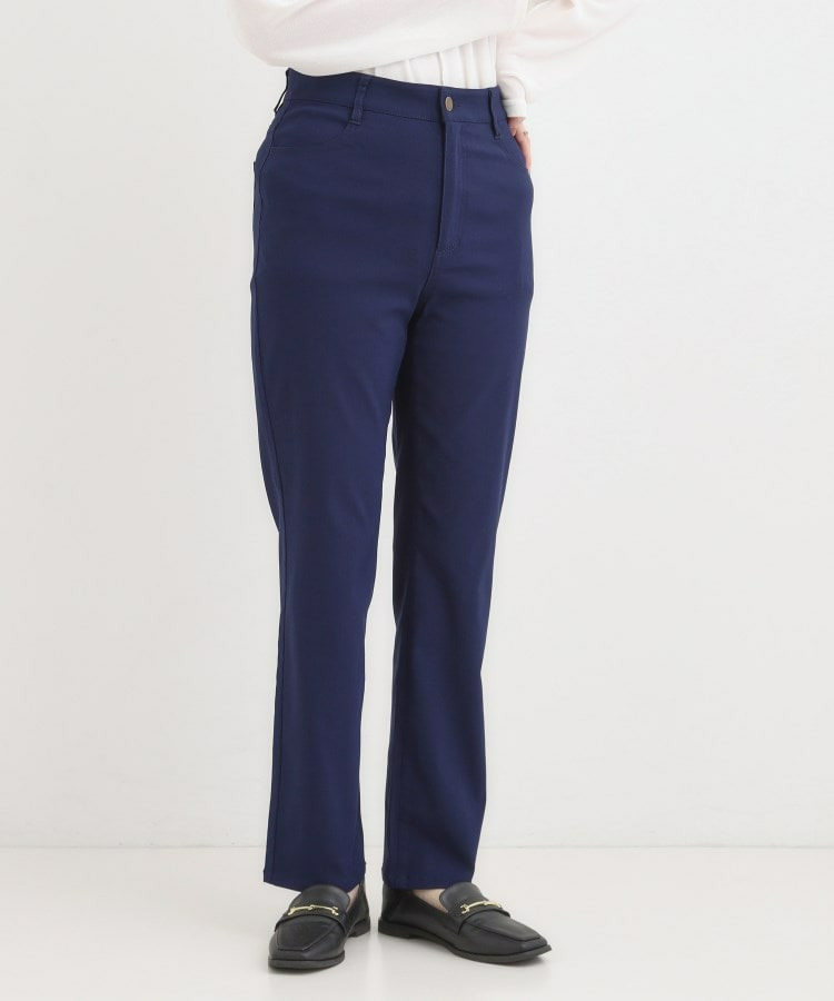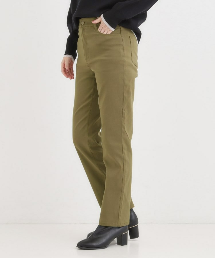 柔らかな肌触りで、伸縮性に富んだストレートシルエットのパンツ。