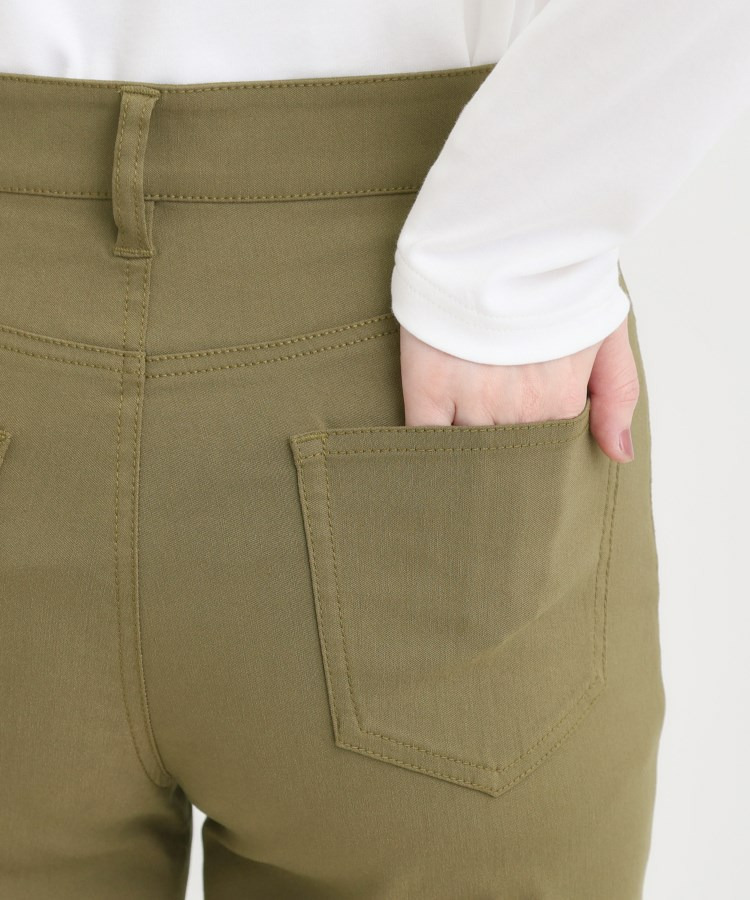 脚をスラっと見せるように、腰回りから太ももあたりはフィットし、ふくらはぎ下から程よいストレートシルエットになっています。