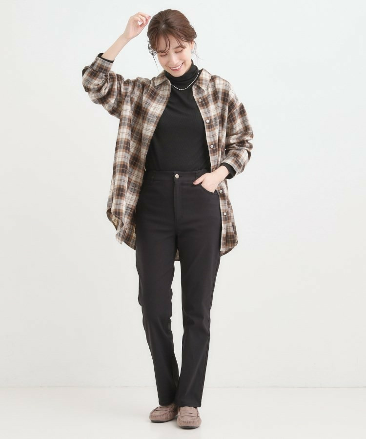 ゆったりサイズのトップスやロング丈のアイテムと合わせるとメリハリある着こなしになり、おすすめです。