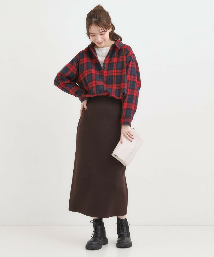 ゆるシルエットで丈長めなので、ボトムはすっきりシルエットがおすすめ。