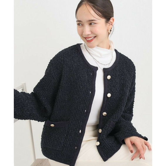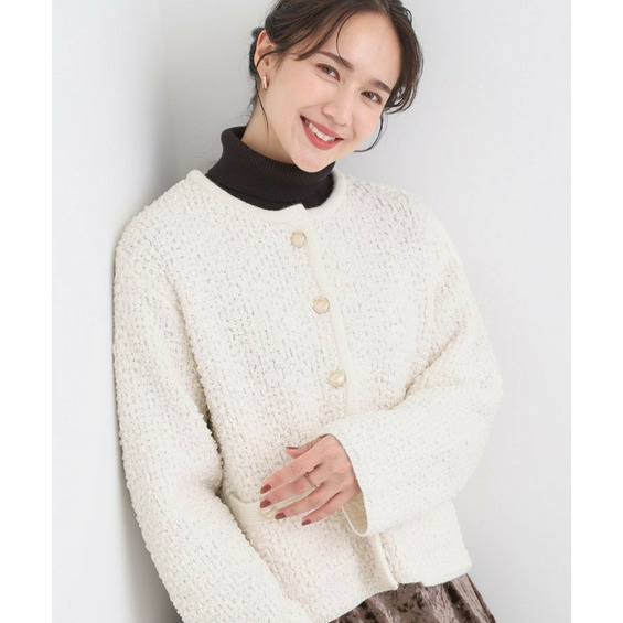 凹凸感のある素材が目を引く、表情豊かなニットカーディガン。