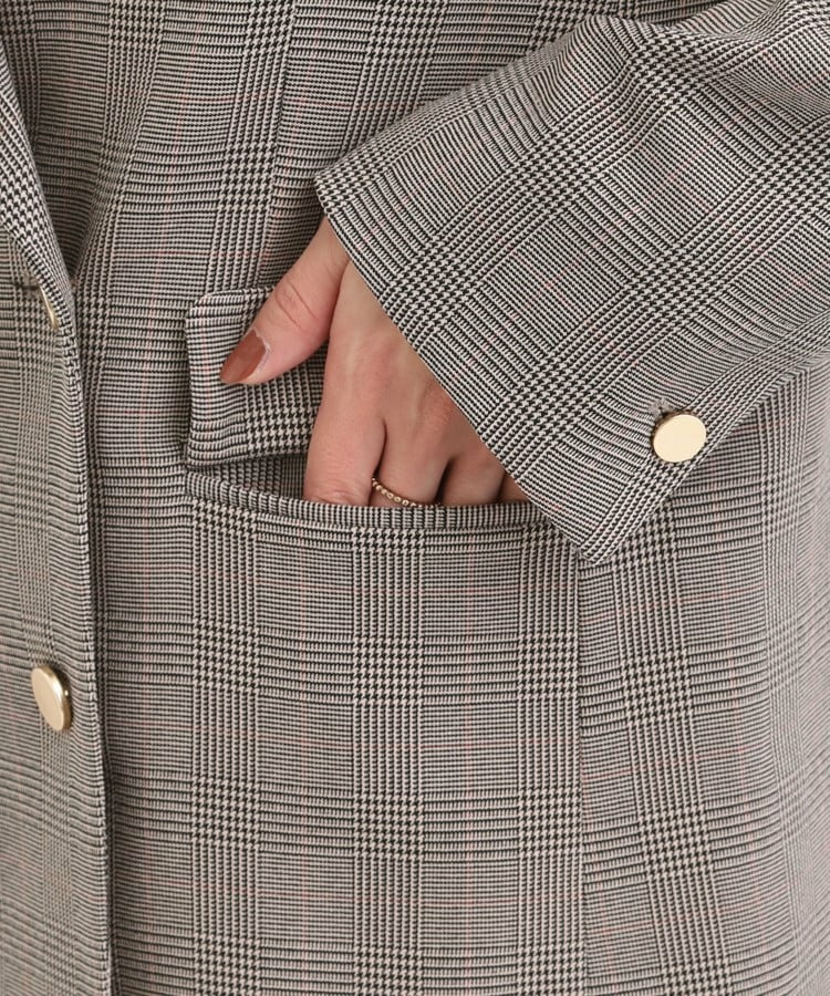 かっちりしすぎずカジュアルすぎないシルエットで、洗練されたアクセントを効かせるゴールドボタンがポイントで、綺麗見えします。