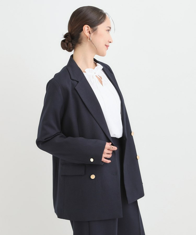 程よくゆとりのあるシルエットが今年らしいダブルブレストのテーラードジャケット。
