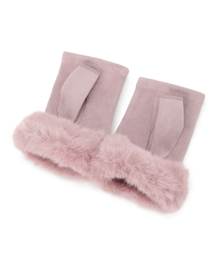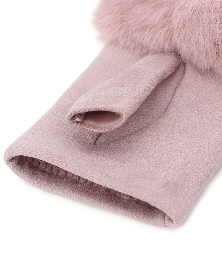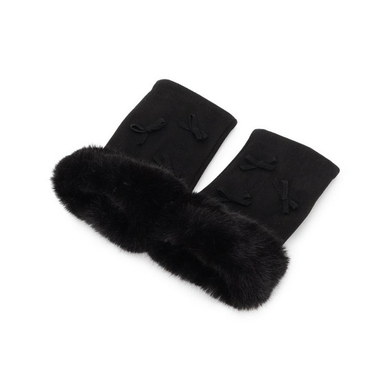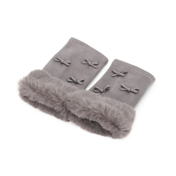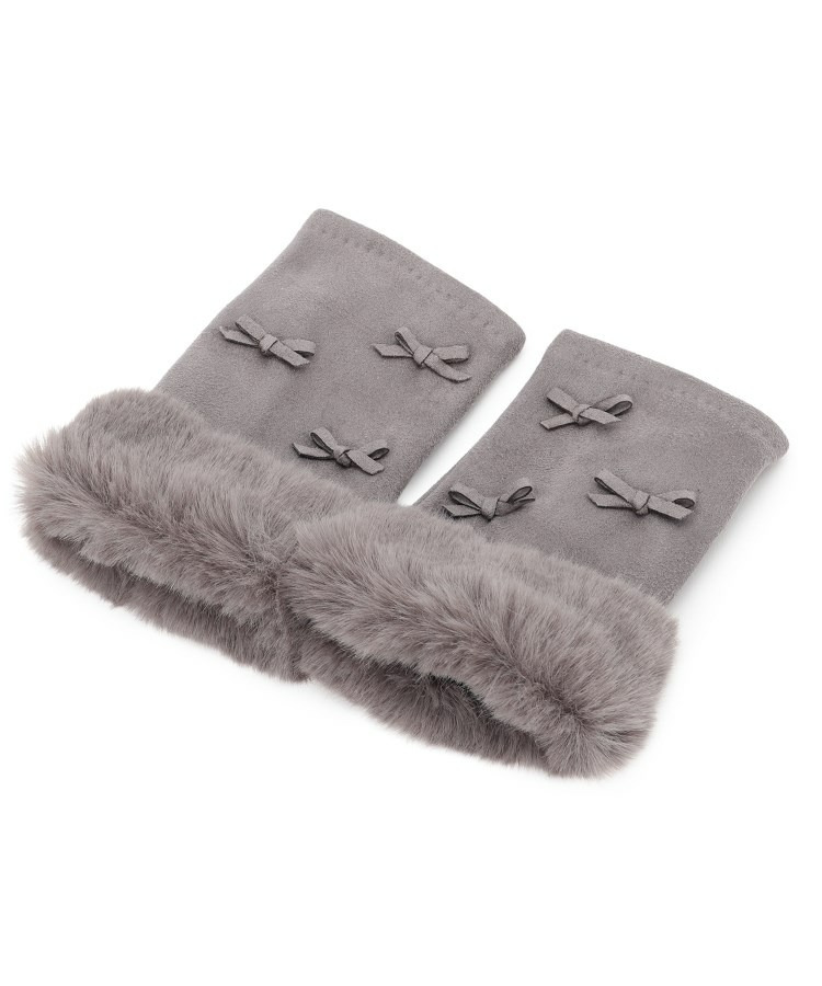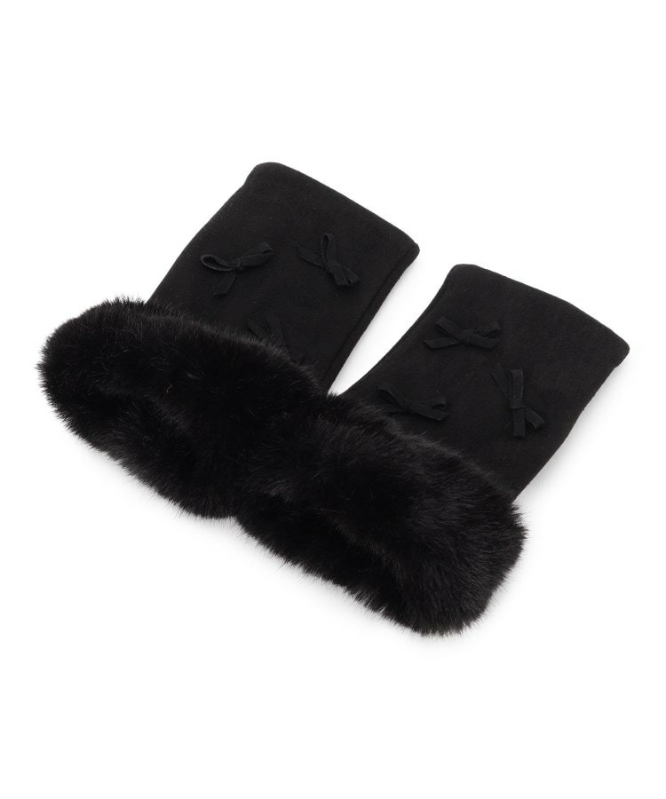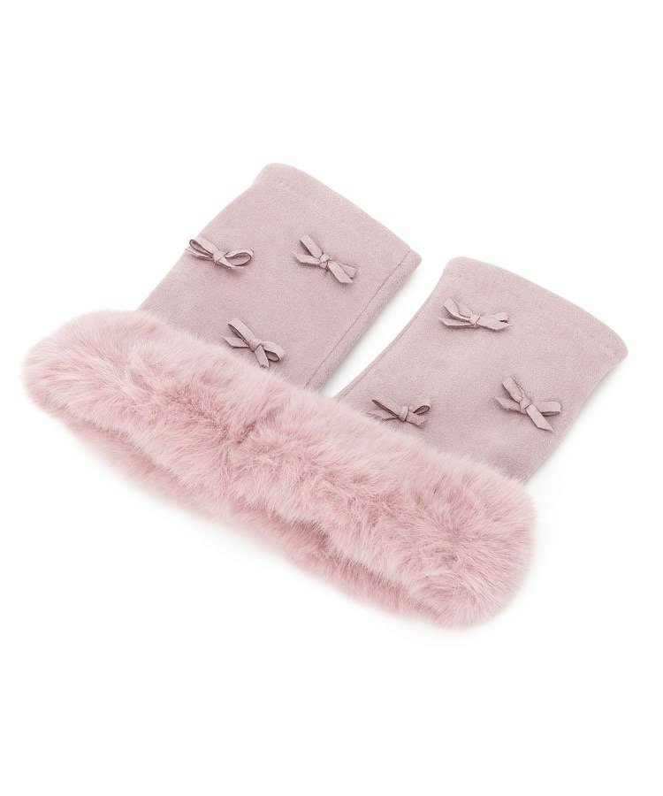 手首には毛足の長いフェイクファー使い、甲の部分に小さなリボン使いで女性らしいエレガントな印象です。
