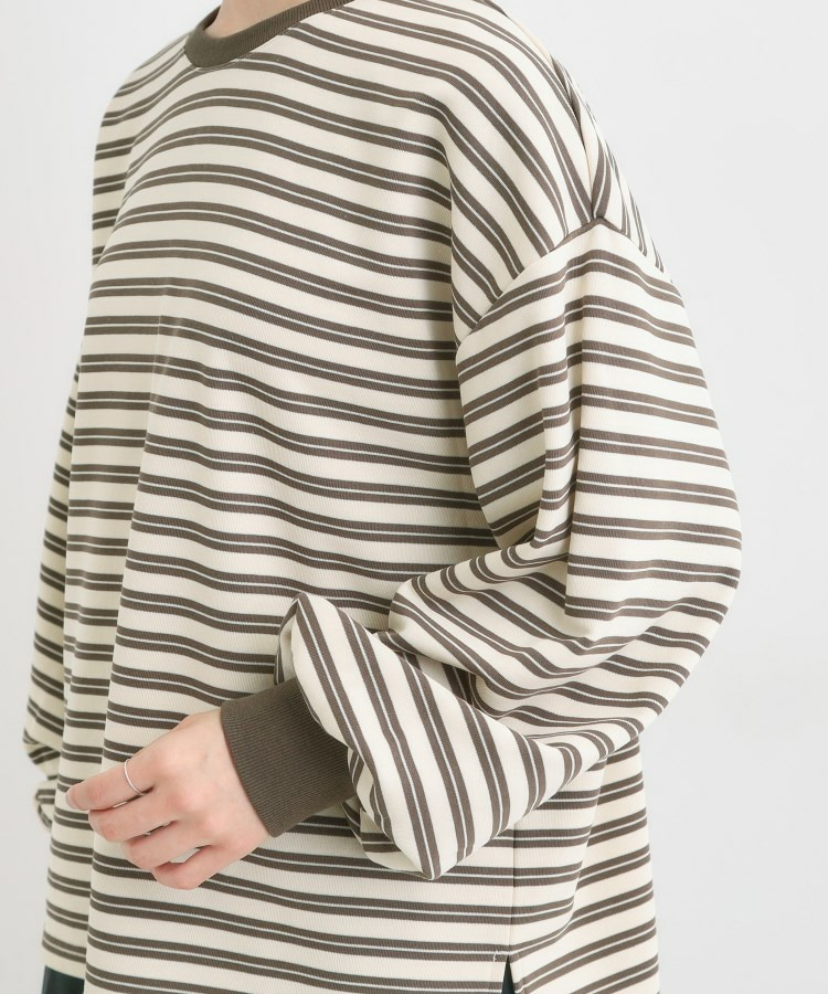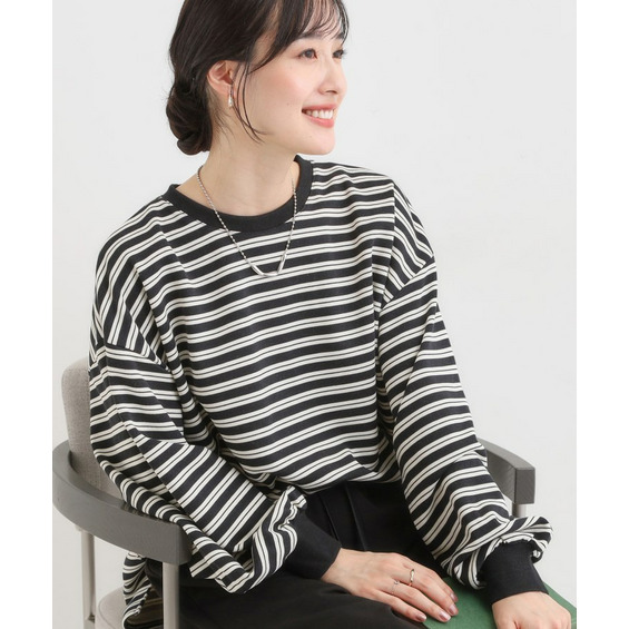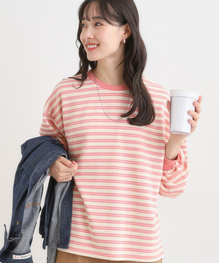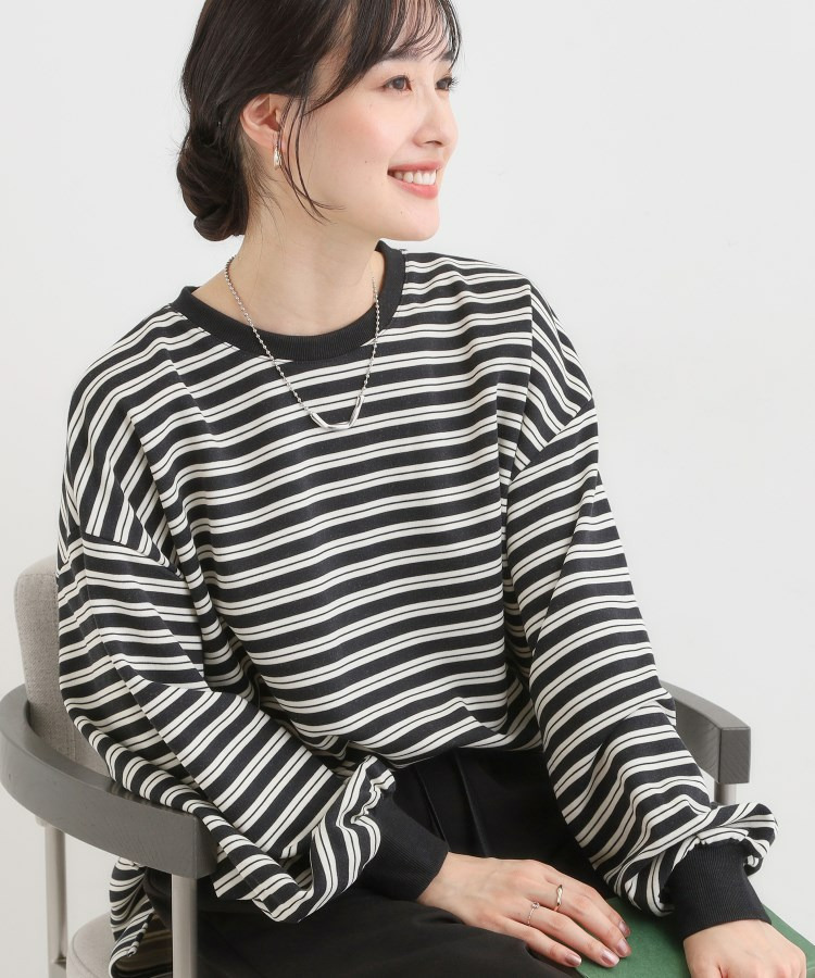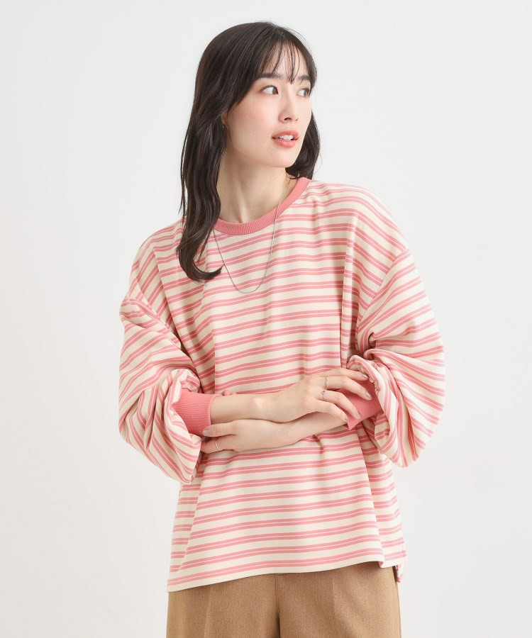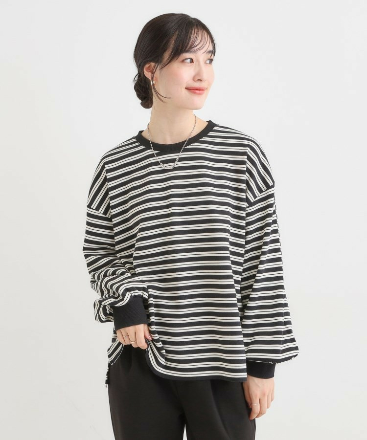 【S-LL/洗濯機可】マルチボーダー ミニ裏毛トップス