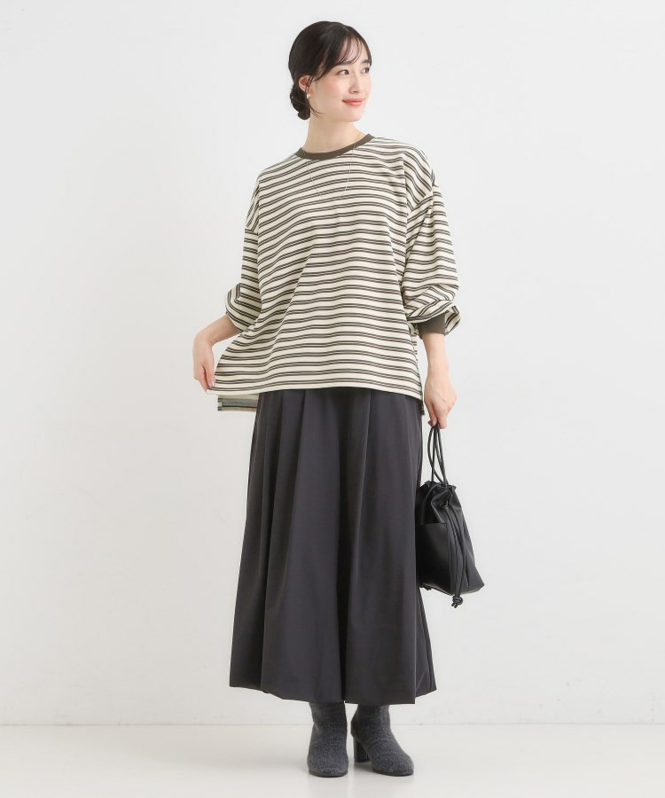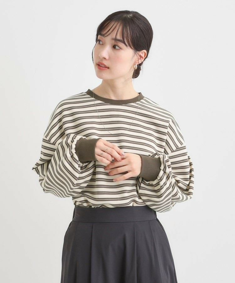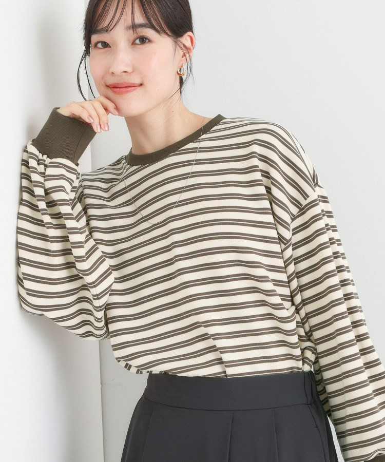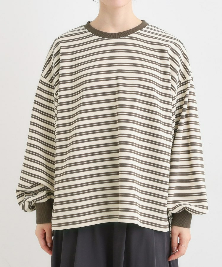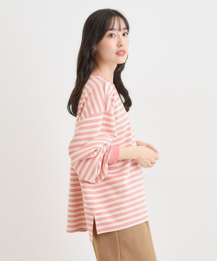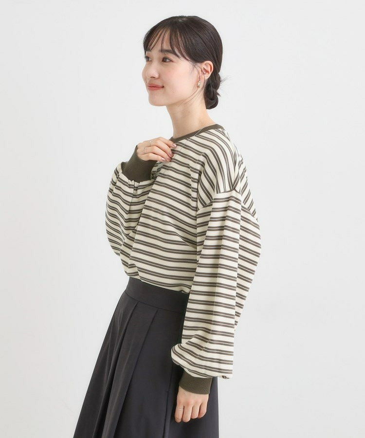 【S-LL/洗濯機可】マルチボーダー ミニ裏毛トップス