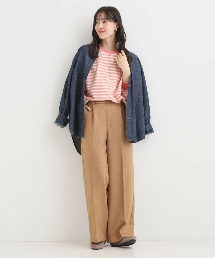 裏毛スウェットより軽く、ロンTよりもしっかりしているので、レイヤードスタイルにおすすめです。