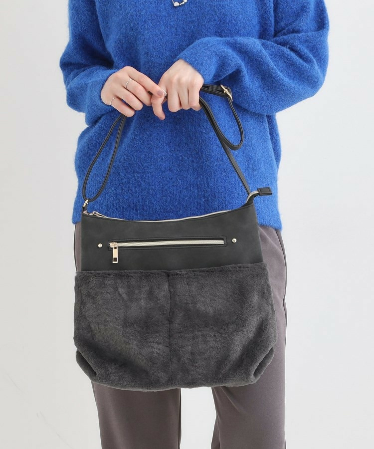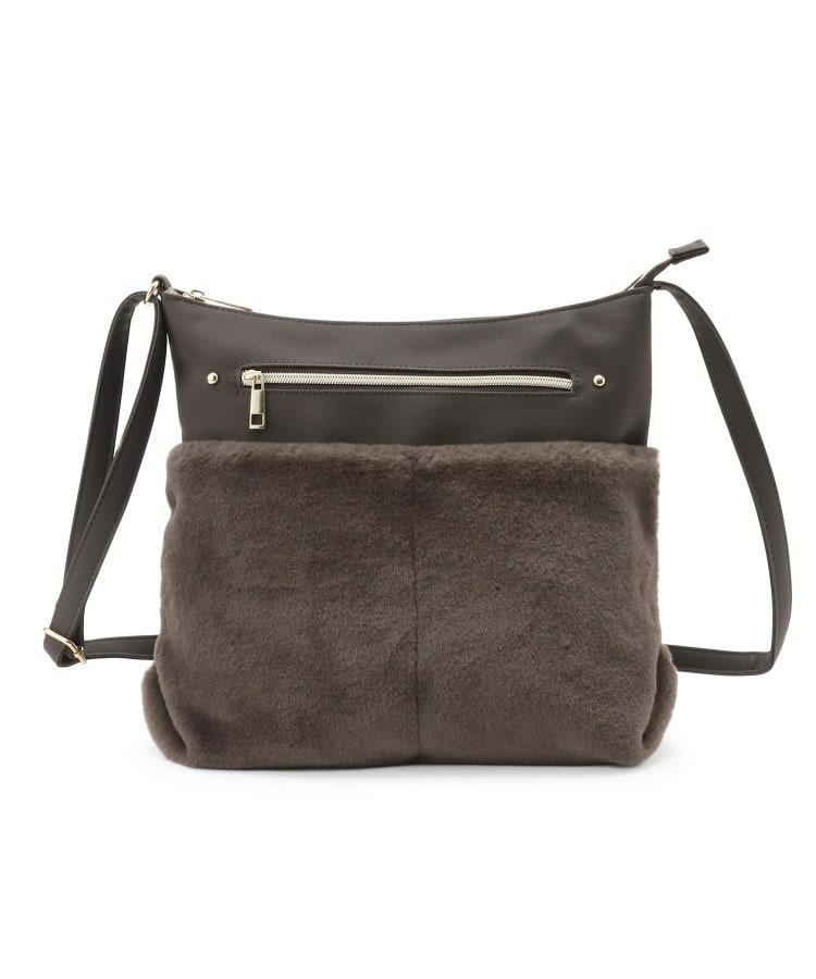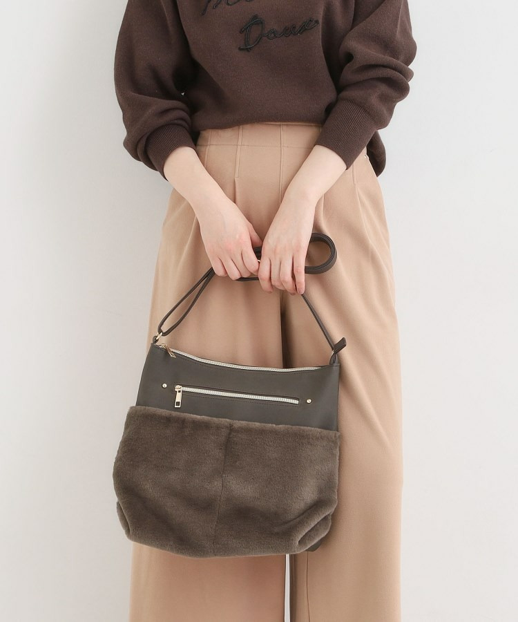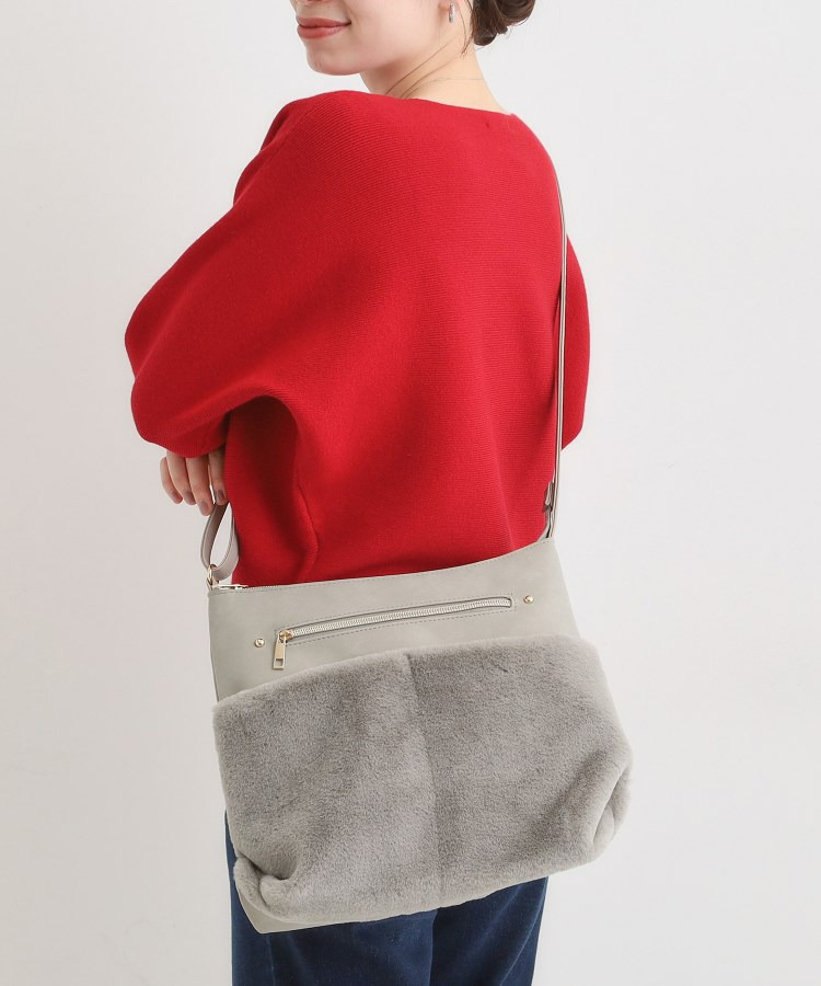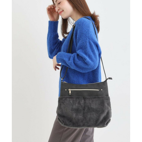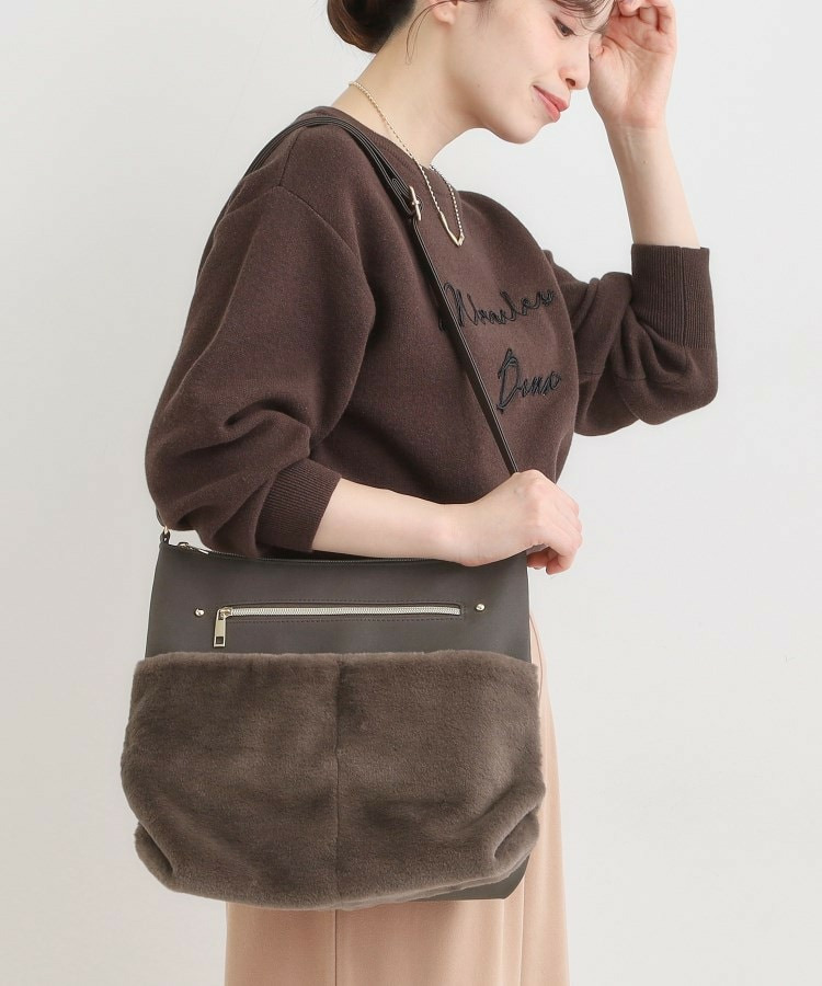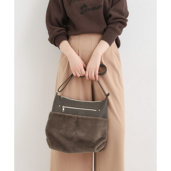 シューラルーで人気のショルダーバッグのデザインを秋冬らしくポケットをファー素材にしました。