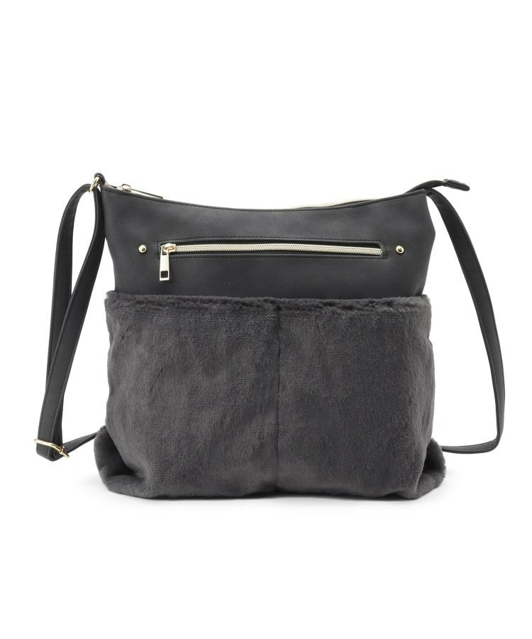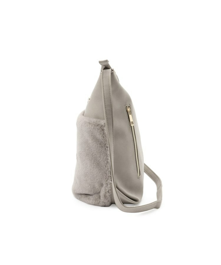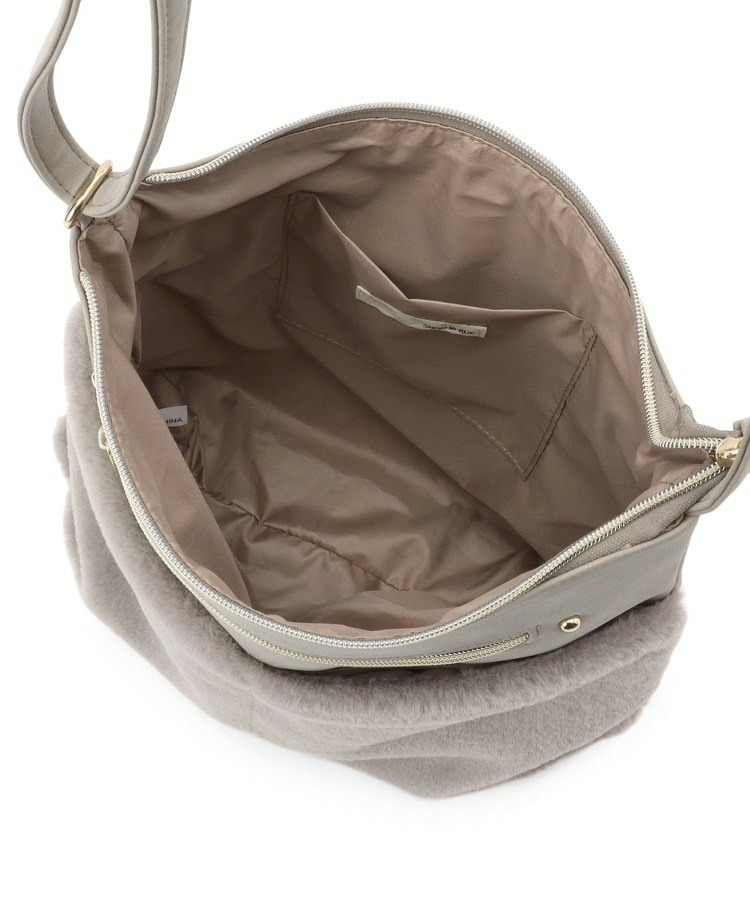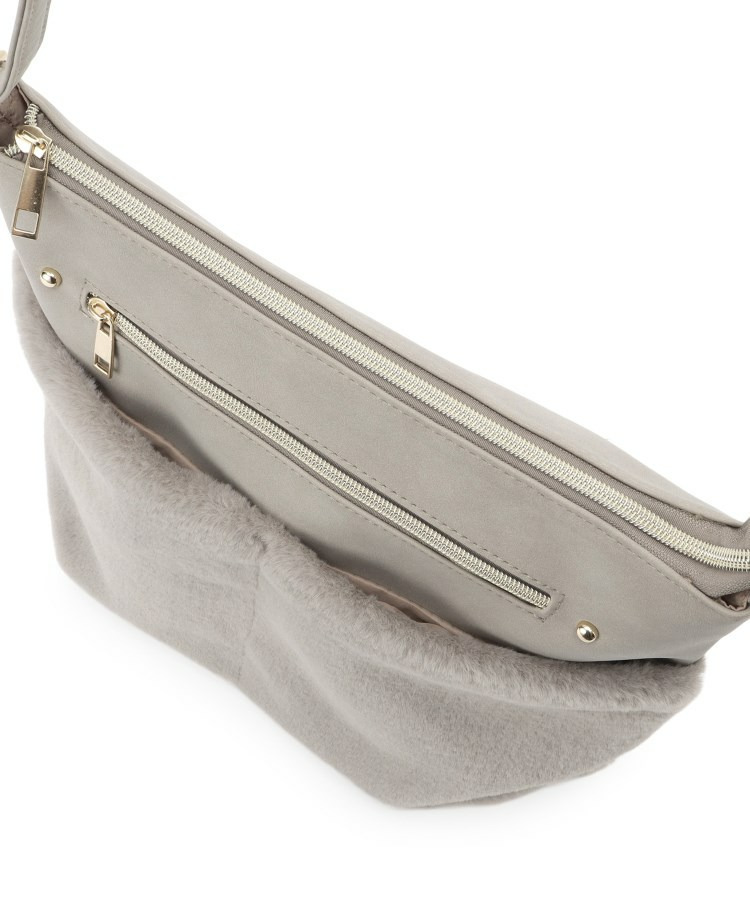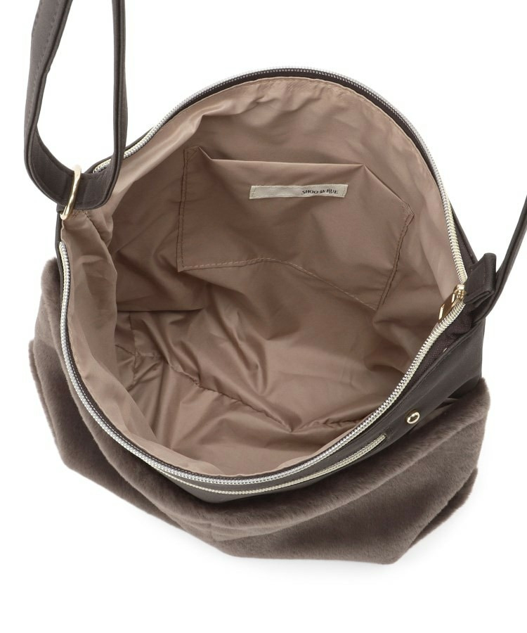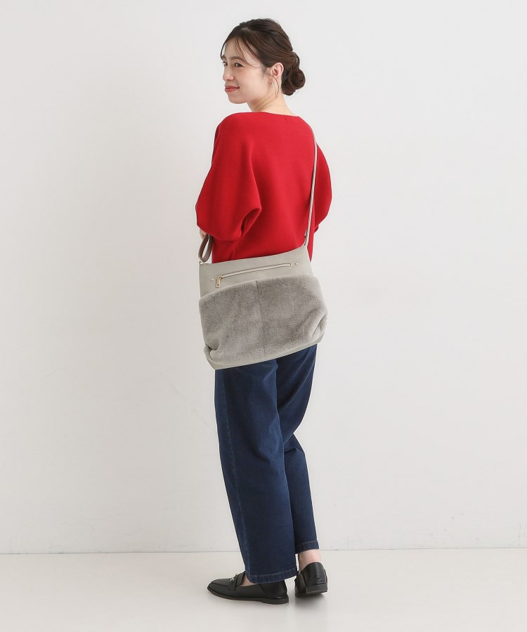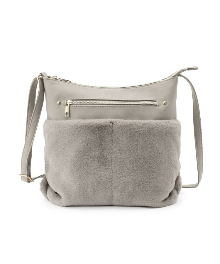 シューラルーで人気のショルダーバッグのデザインを秋冬らしくポケットをファー素材にしました。
