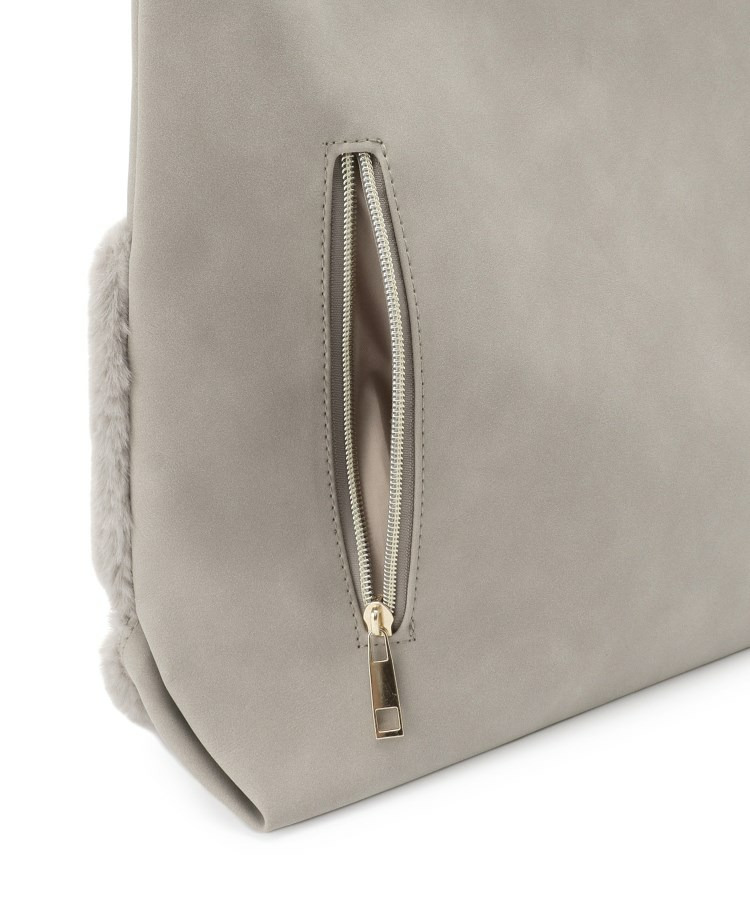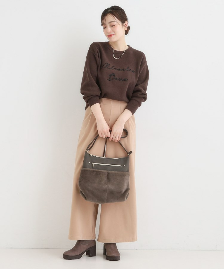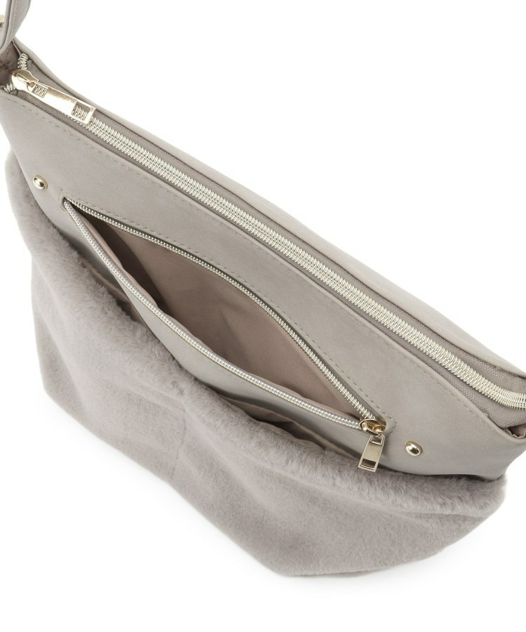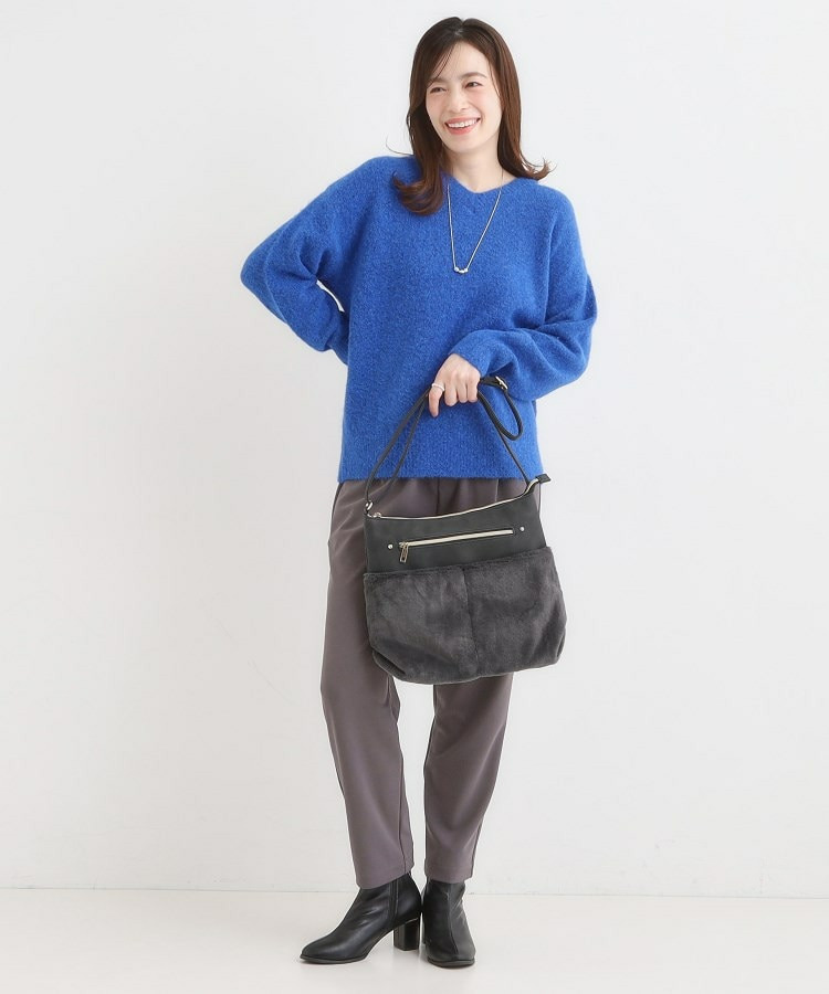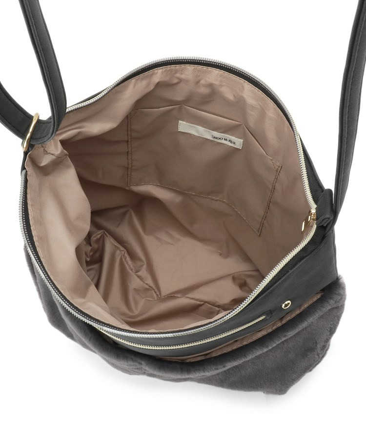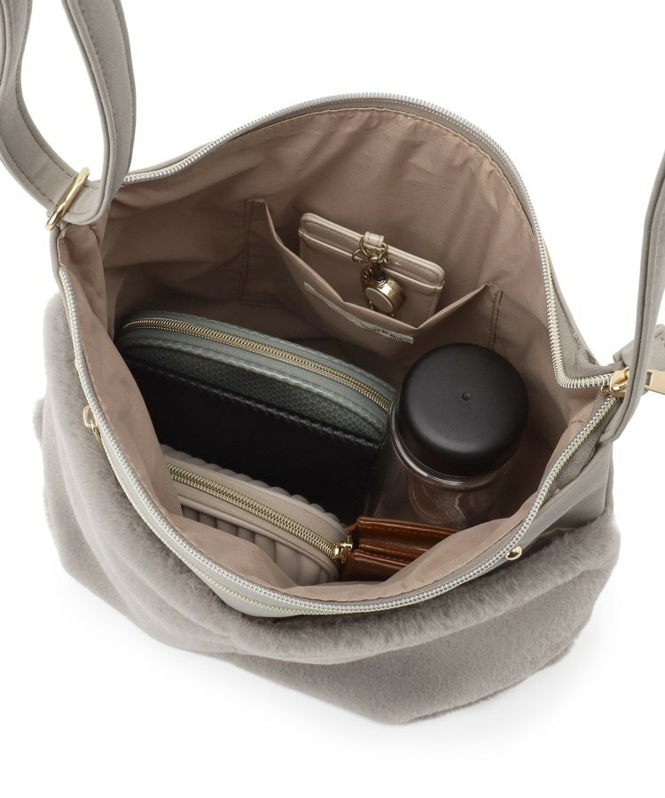 シューラルーで人気のショルダーバッグのデザインを秋冬らしくポケットをファー素材にしました。