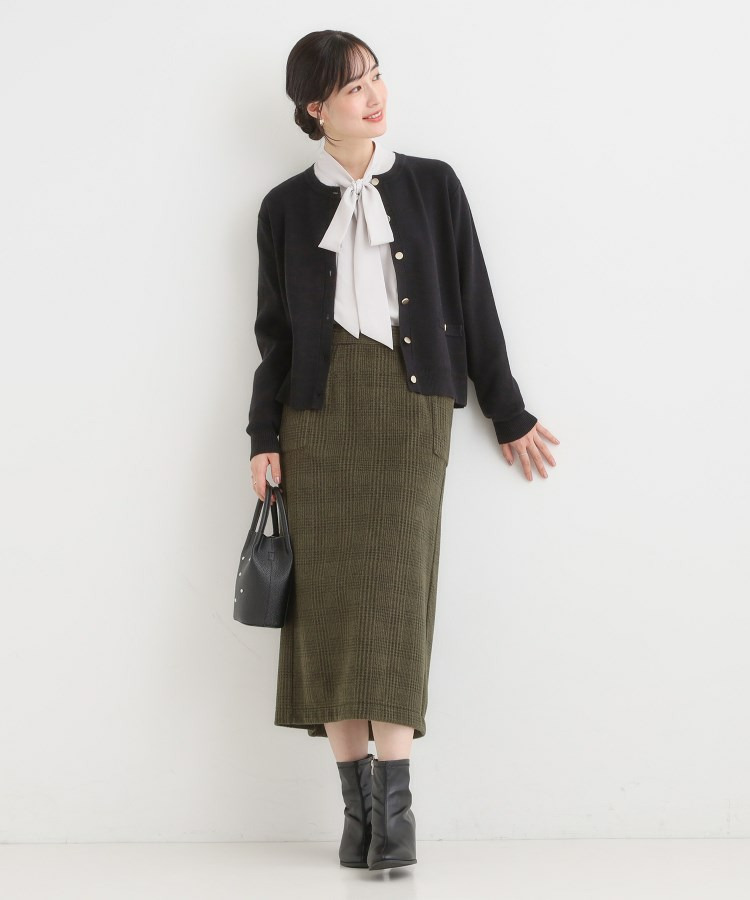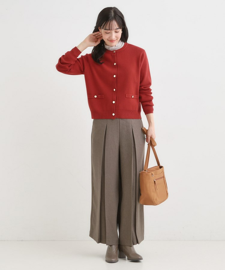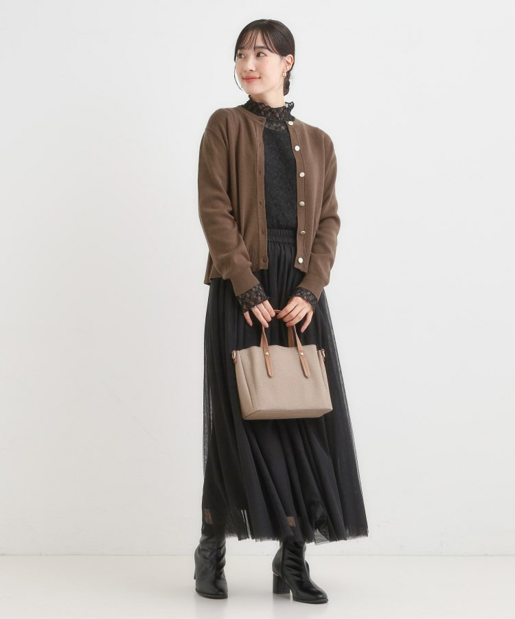 また、ワンピースやスカートの上ならお食事会などのシーンにもおすすめです。