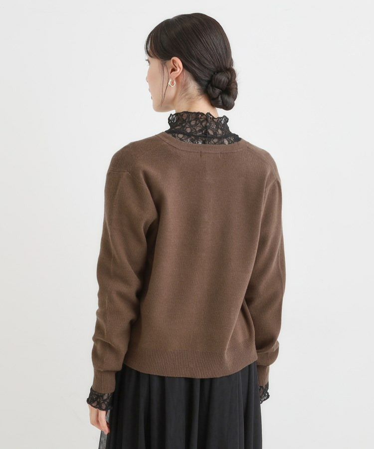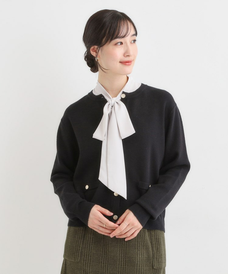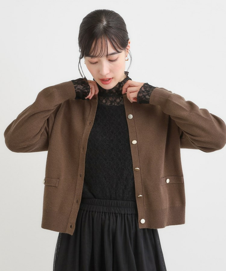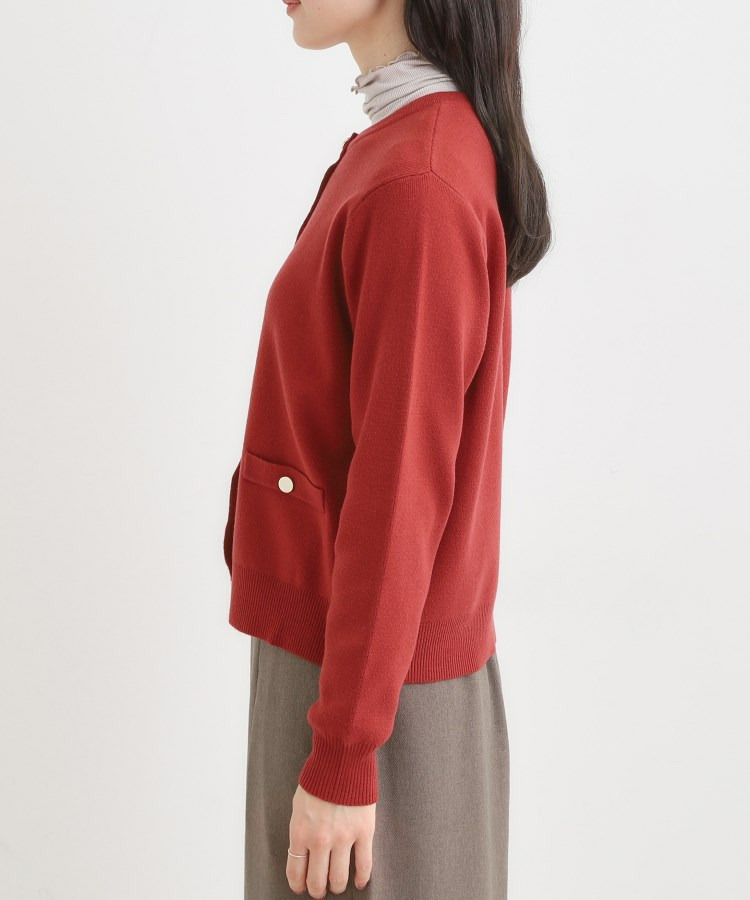 【セットアップ可/洗濯機可】もちもちタッチが心地よい クルーネックカーディガン