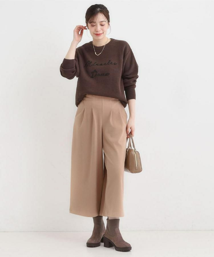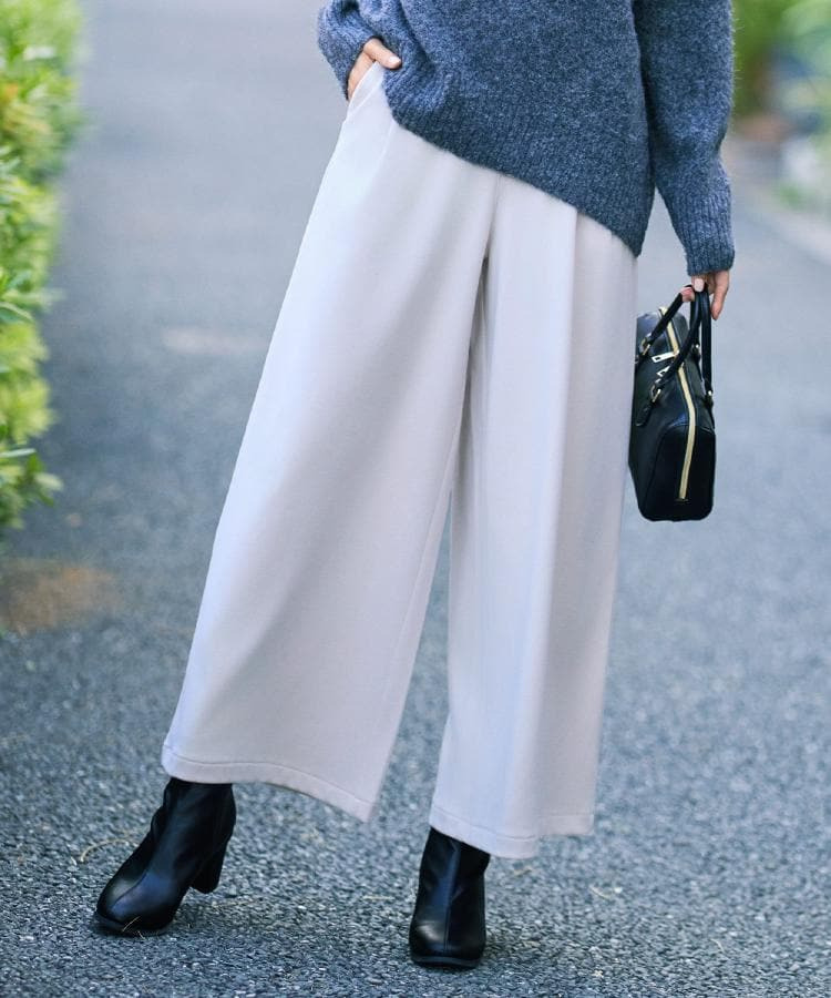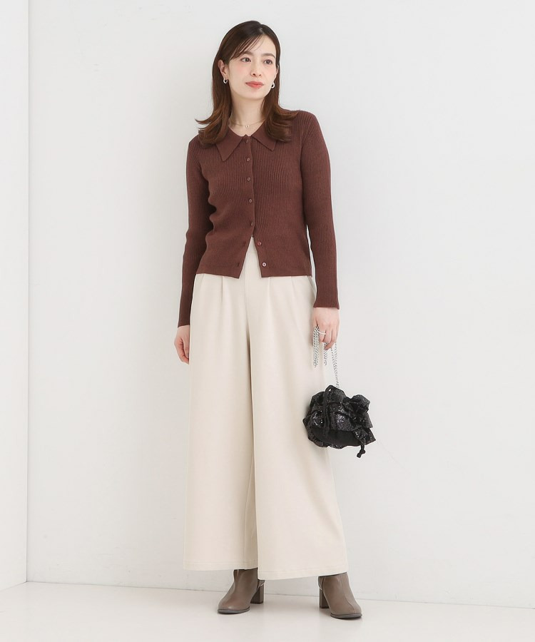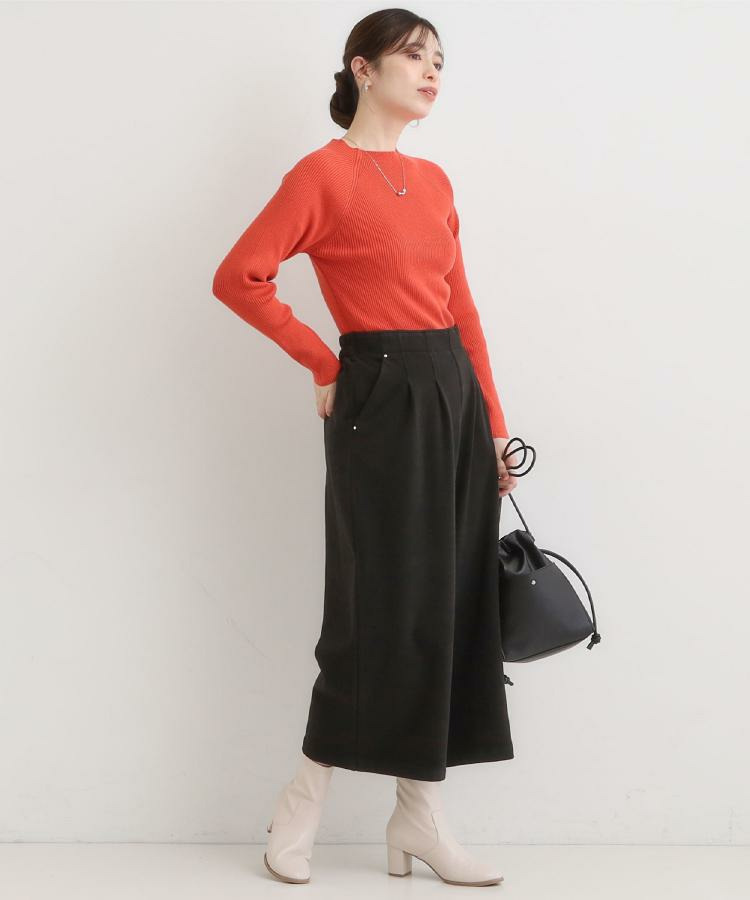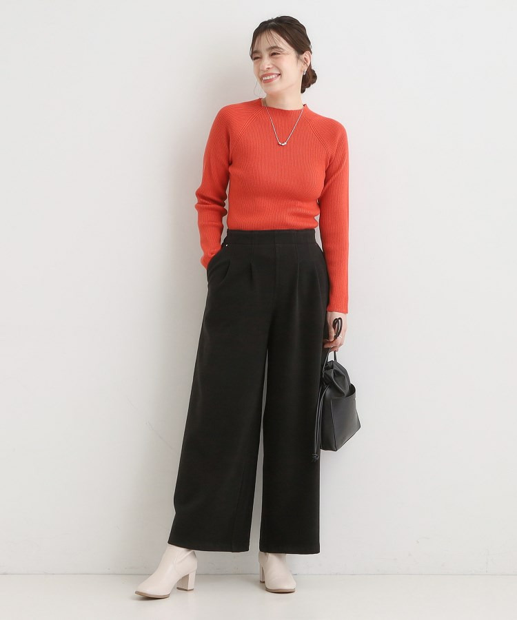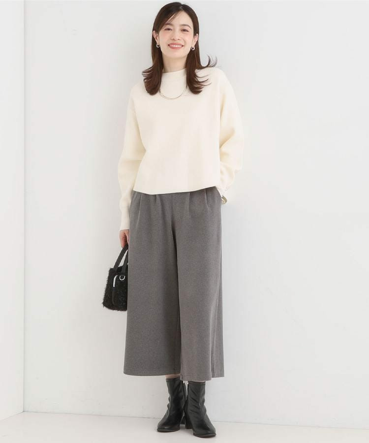 ハイゲージのニットをタックインした着こなしや、ショート丈のアウターともバランスが取りやすく、こなれたスタイリングになります。