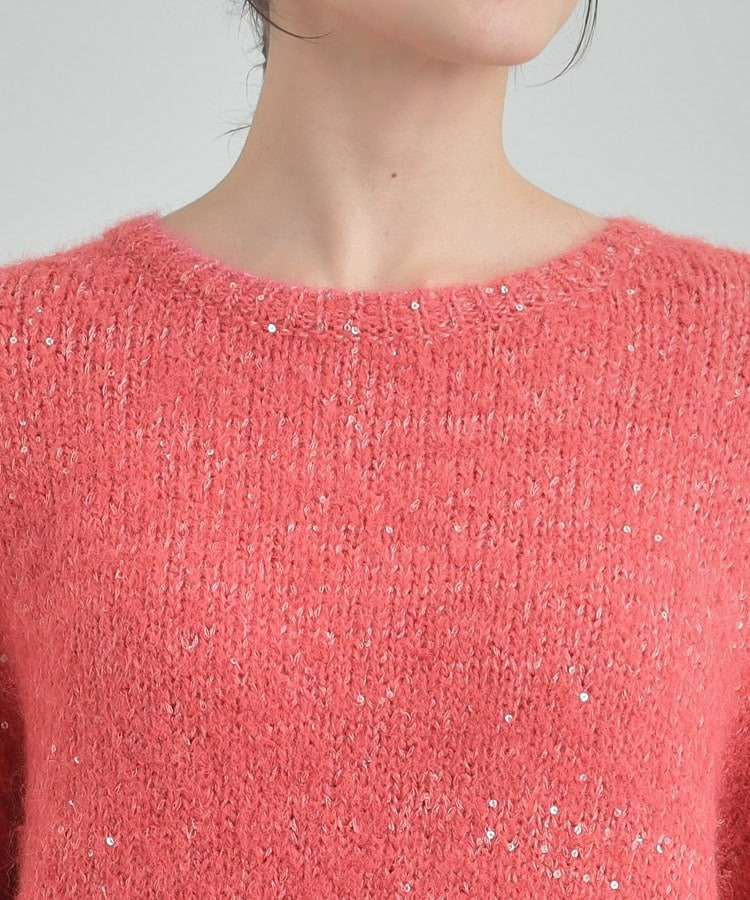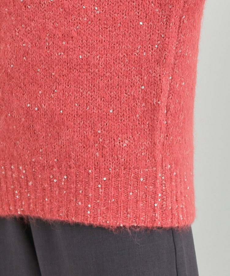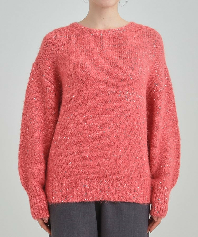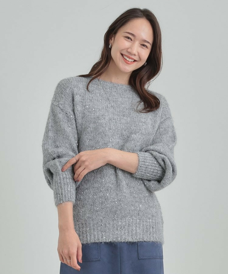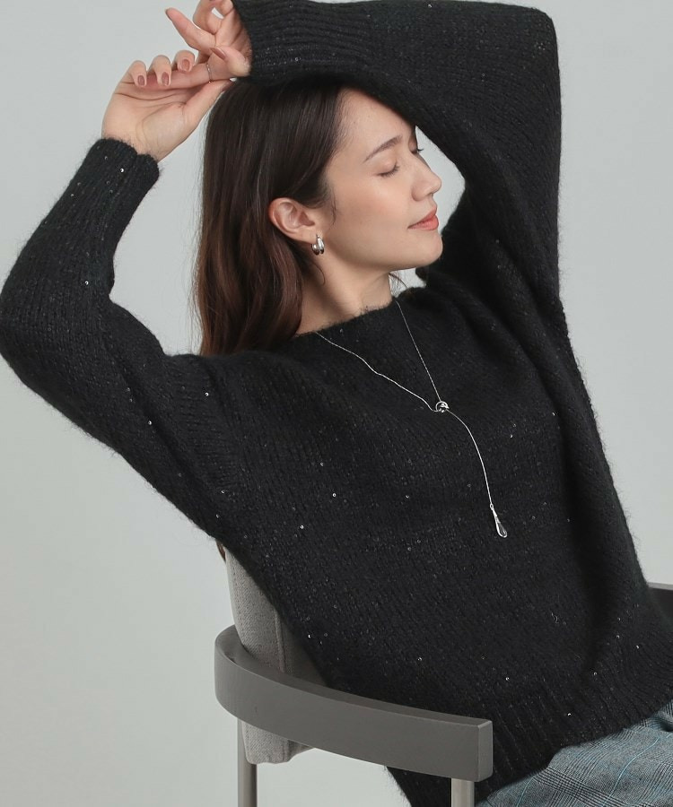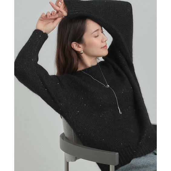 ふわふわの糸にスパンコールをミックスした、程よく上品なキラキラ感あるニット。