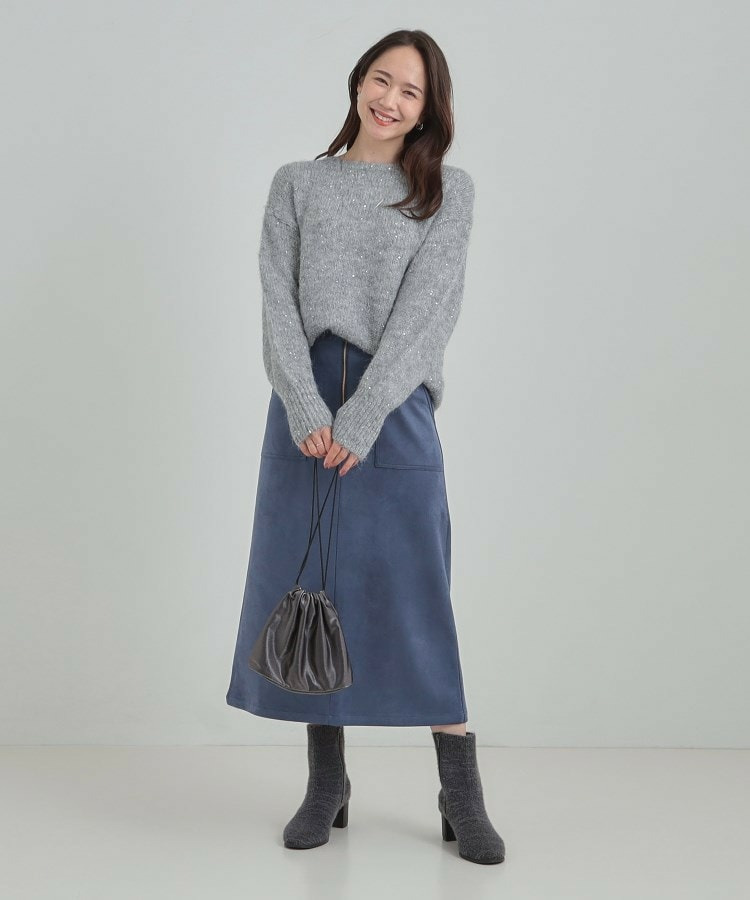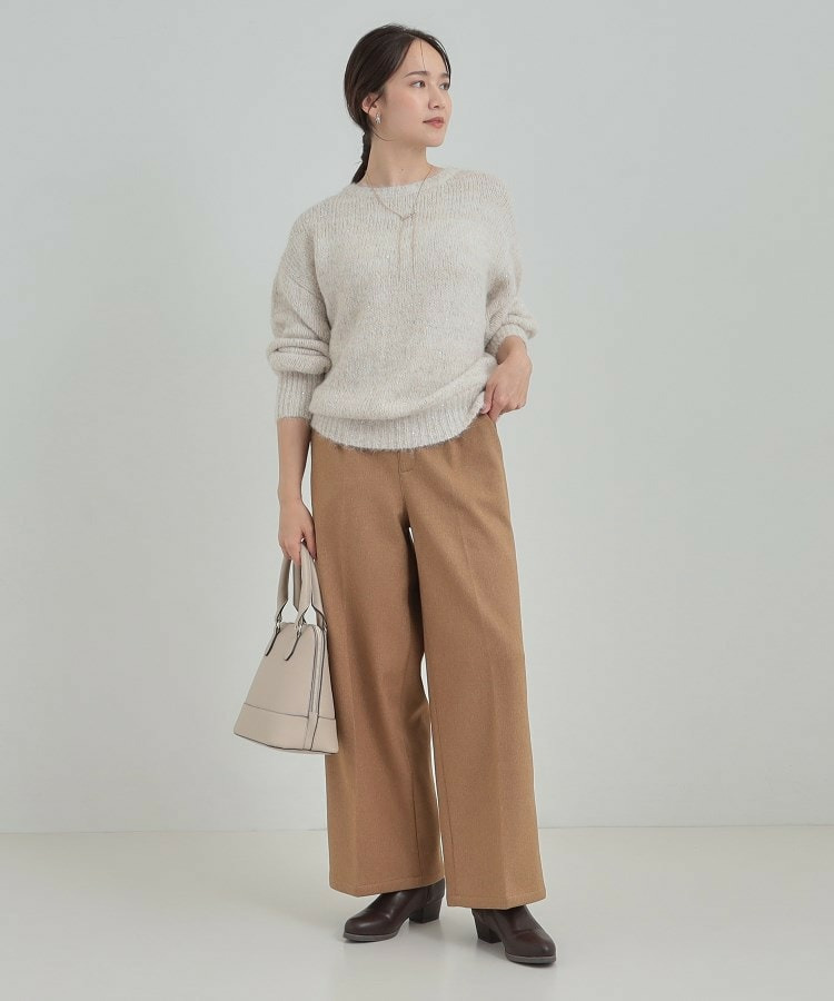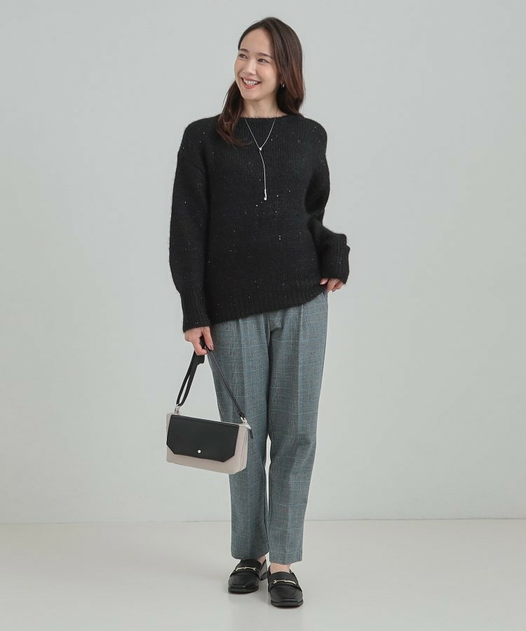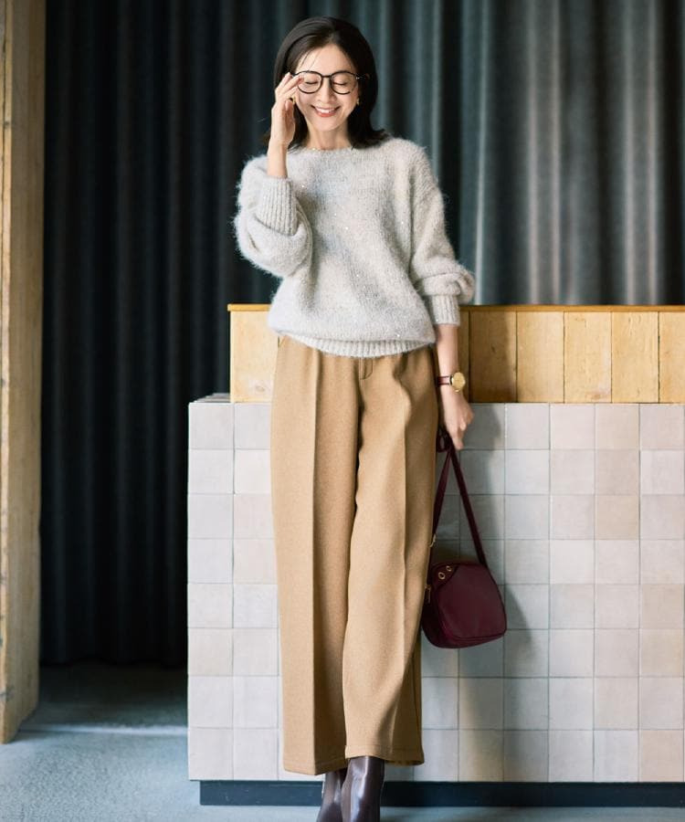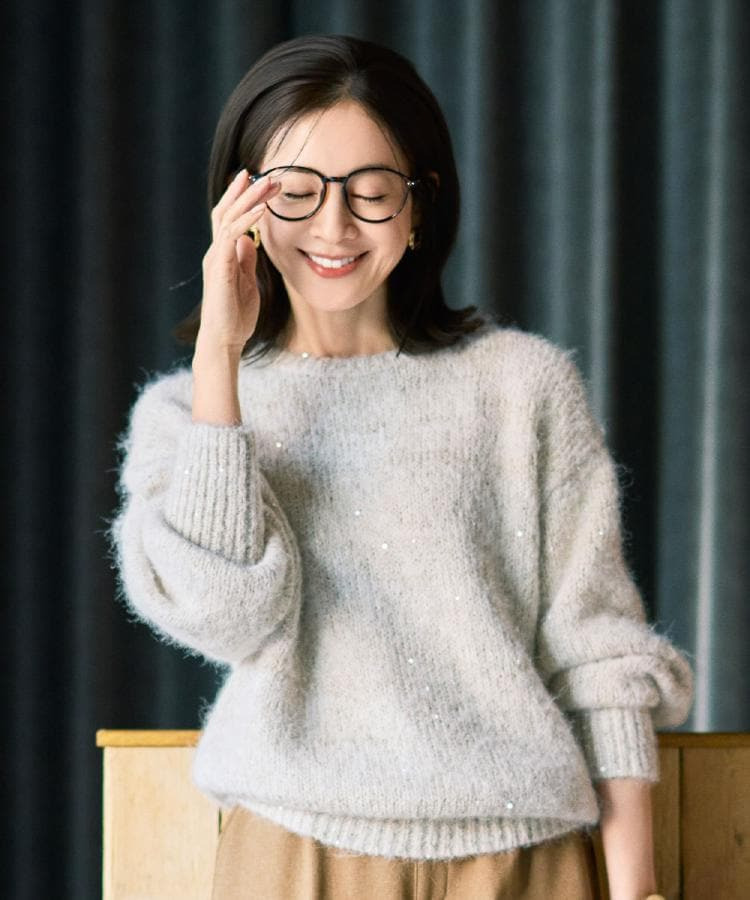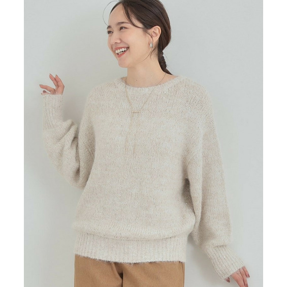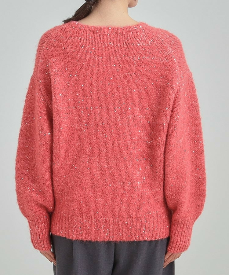 ふわふわの糸にスパンコールをミックスした、程よく上品なキラキラ感あるニット。