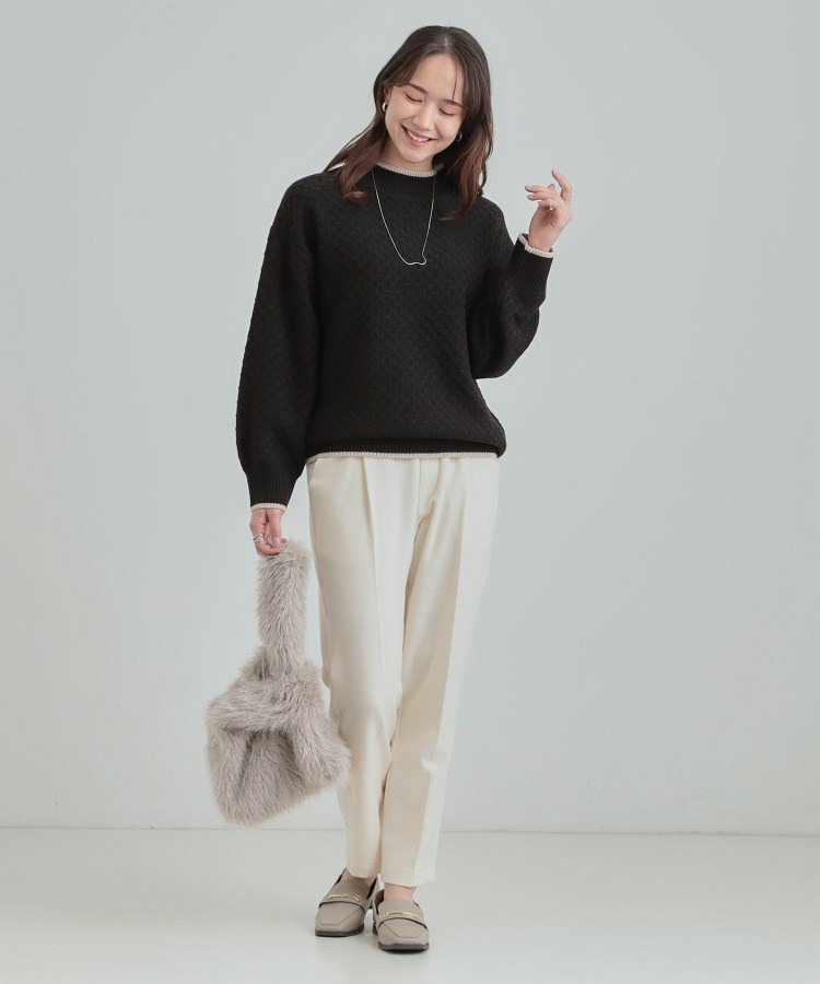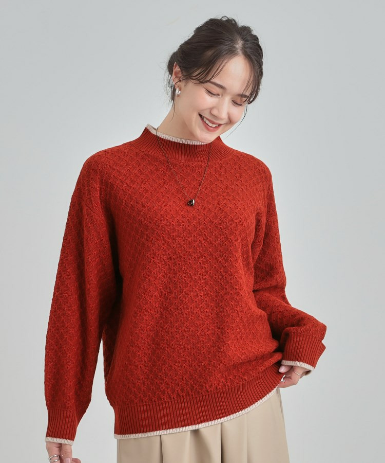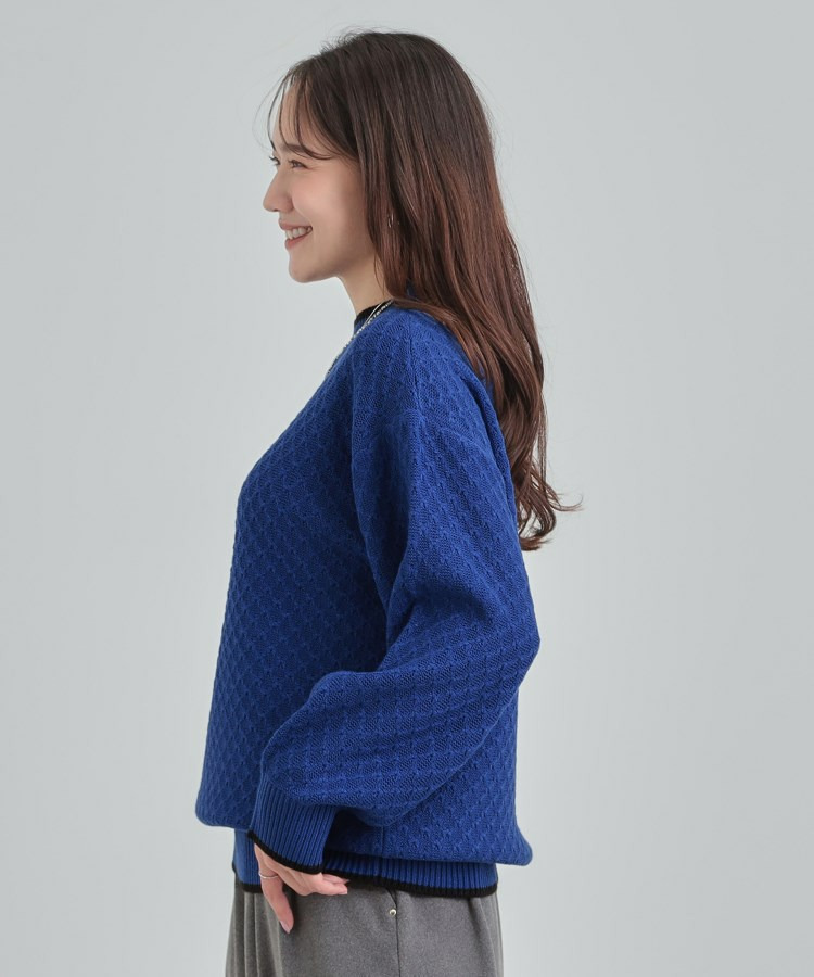 【洗える/毛玉レス】ダイヤ柄ゆるニット