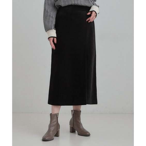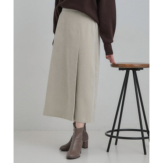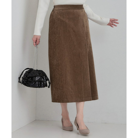 程よく厚みのあるモール風の素材が特徴的なナロースカート。